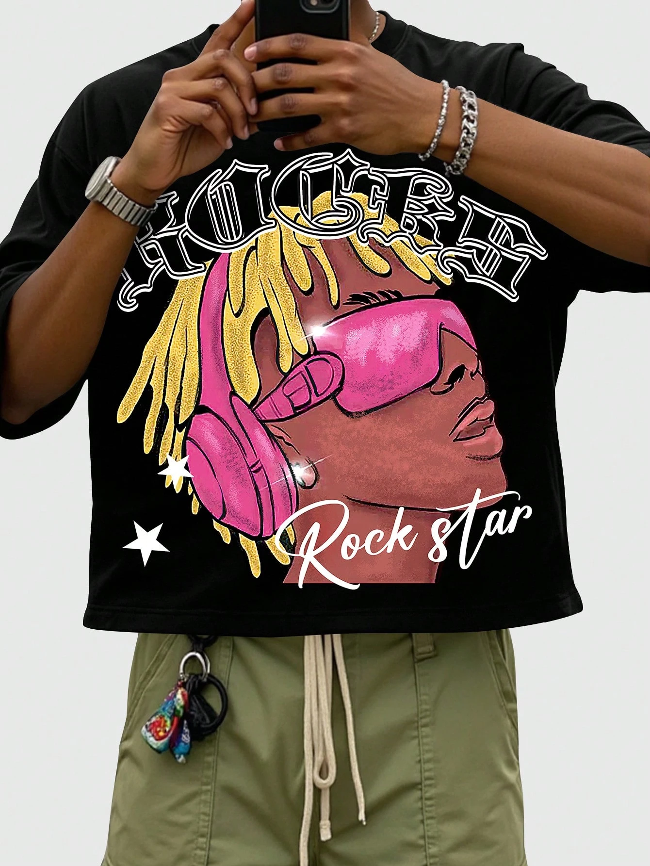 Street Life Men's Casual Hip Hop Character & Letter Print Short Sleeve T-Shirt