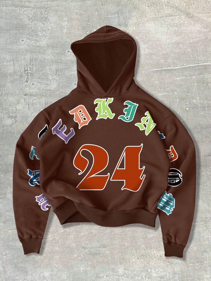Street Life Men's Casual Letter & Number Print Hoodie, Autumn/Winter