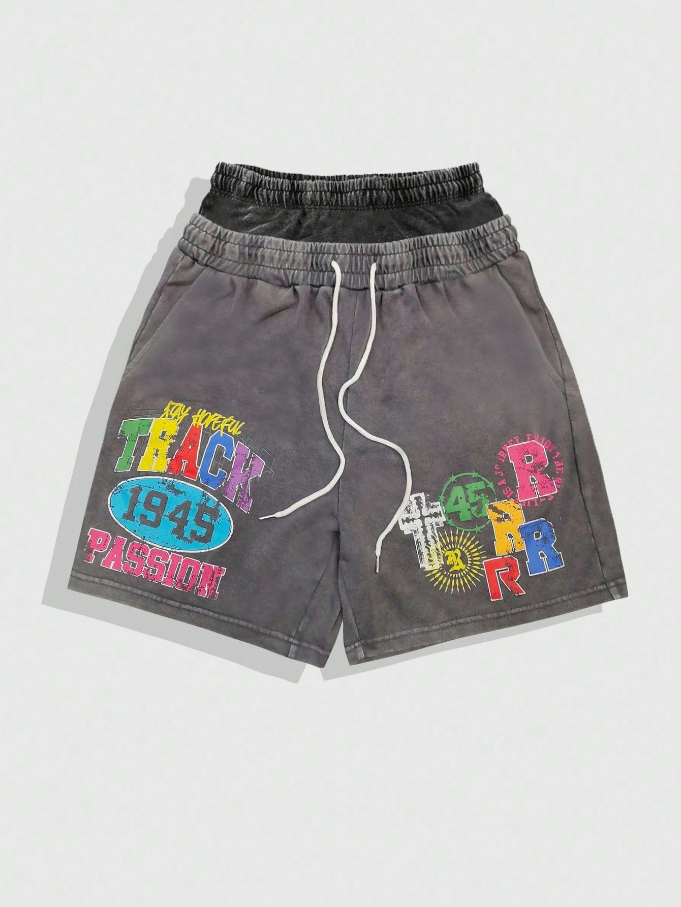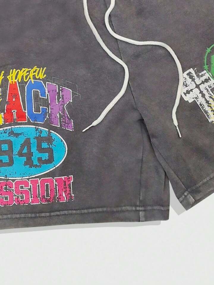 Street Life Men's Casual Letter Print Drawstring Waist Shorts, Summer