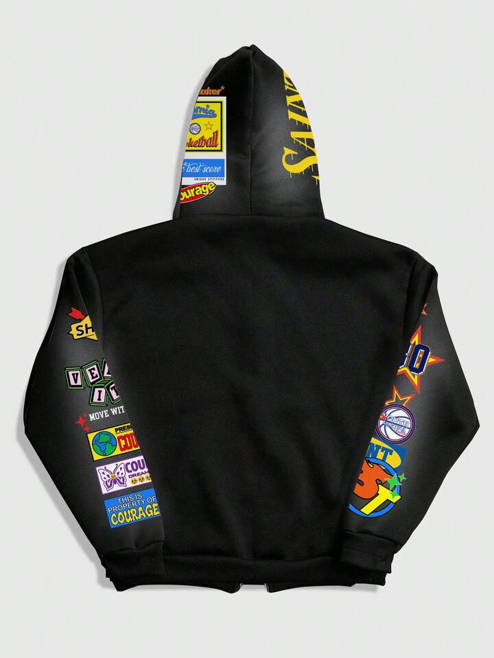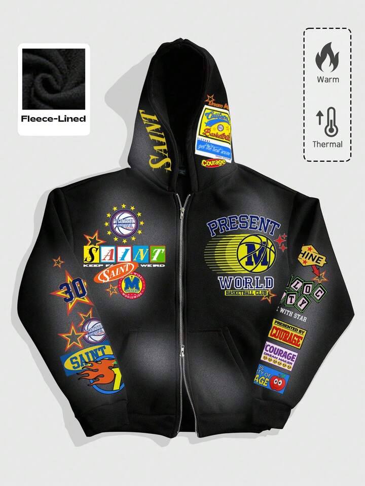 Street Life Men's Casual Letter Print Zip-Up Hoodie, Autumn/Winter