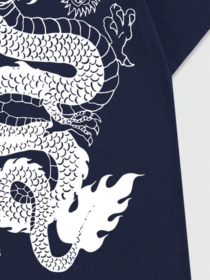 Street Life Men's Casual Loose Dragon Print Short Sleeve T-Shirt