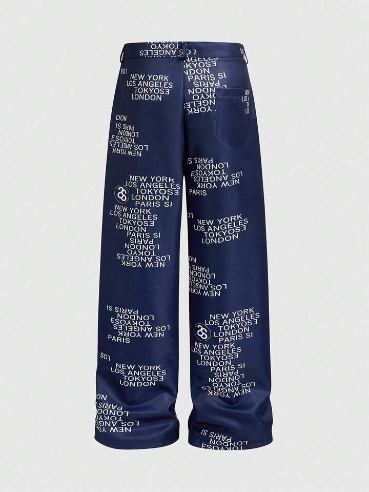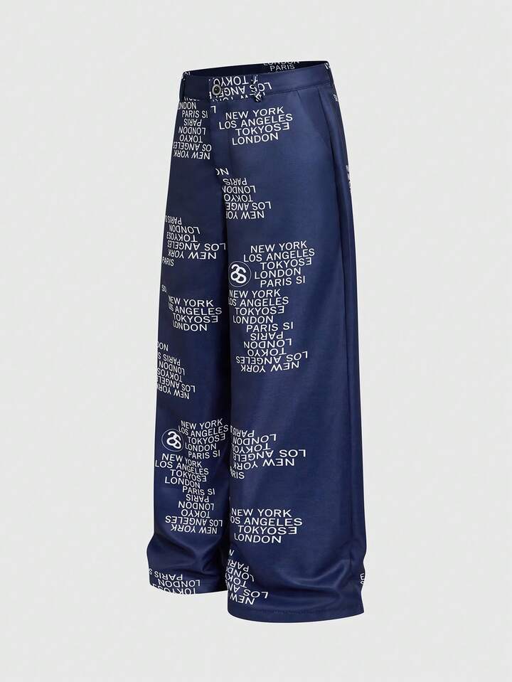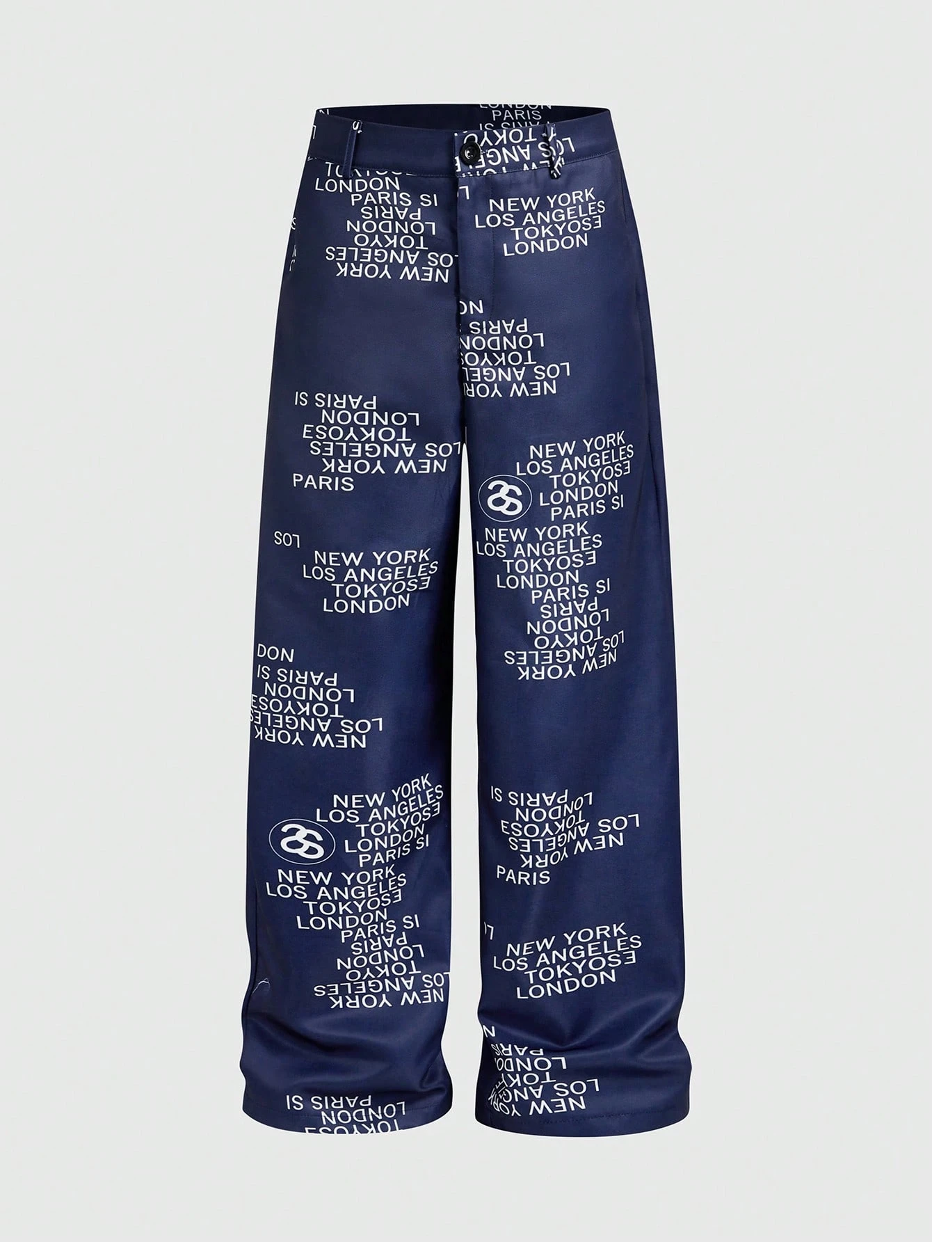 Street Life Men's Casual Loose Straight Leg Pants With Streetwear Slogan Graphic