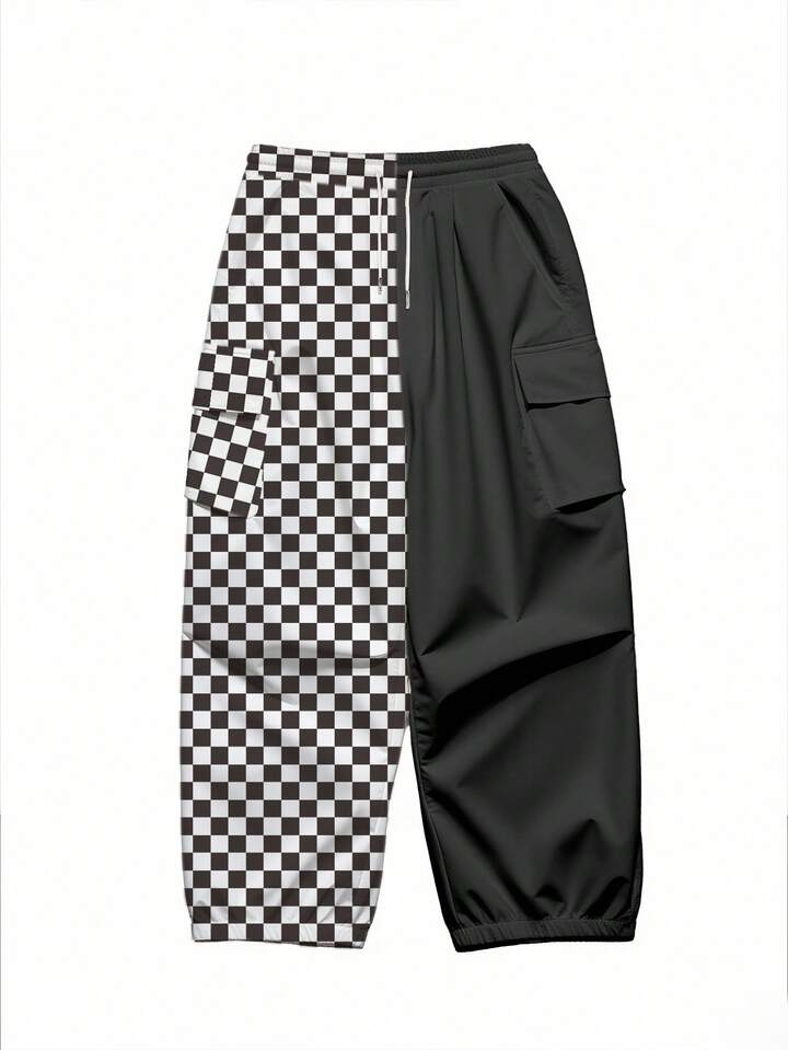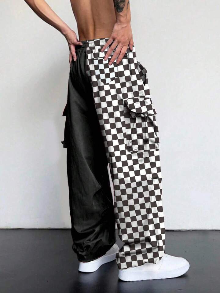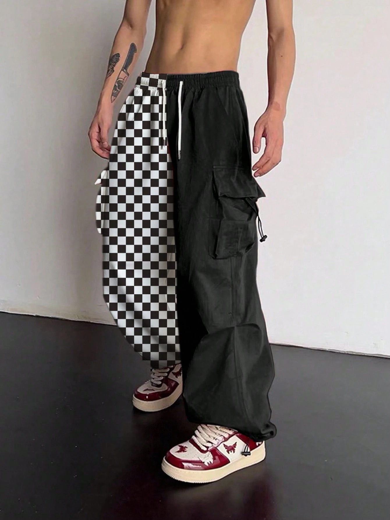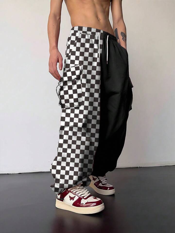 Street Life Men's Casual Patchwork Checkered Cargo Pants