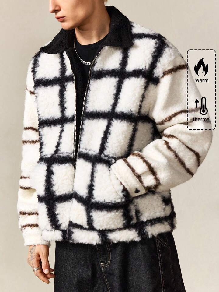 Street Life Men's Casual Patchwork Plaid Overcoat, Autumn/Winter