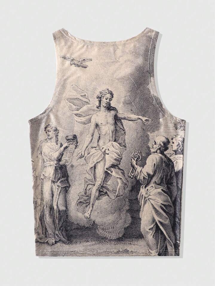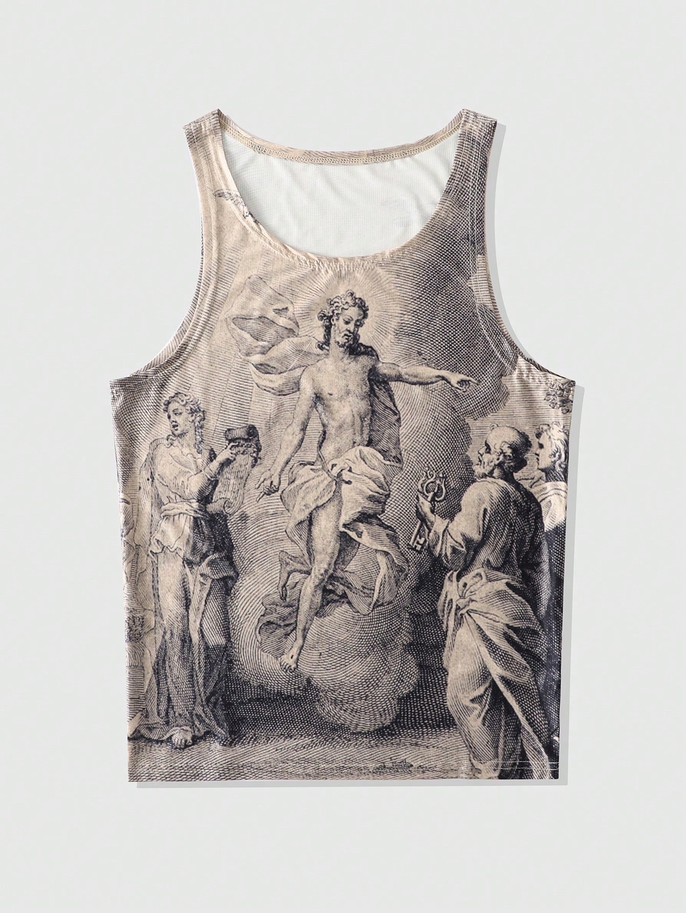 Street Life Men's Casual Religious Character Round Neck Loose Fit Figure Printed Tank Top, Summer