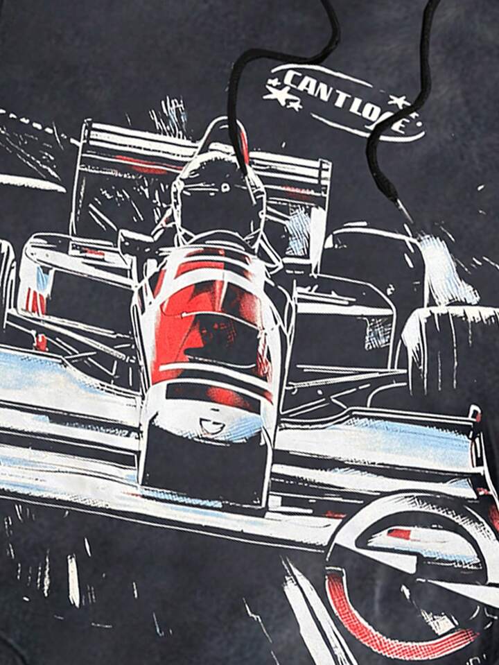 Street Life Men's Casual Street Fashion Race Car & Star Print Drawstring Hoodie Sweatshirt