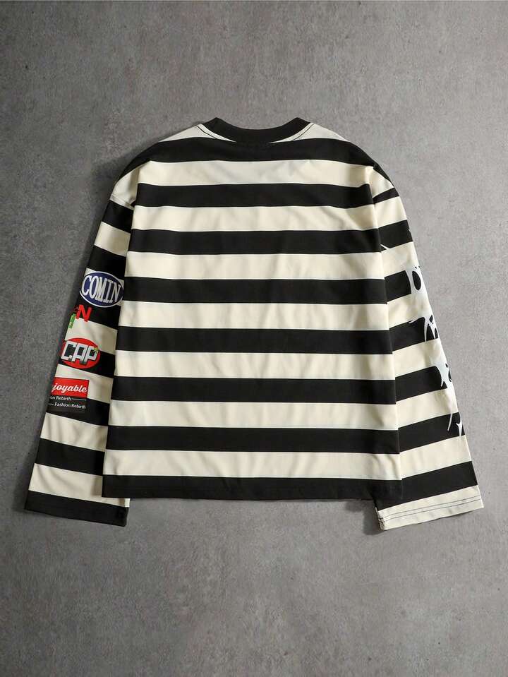 Street Life Men's Casual Striped Letter Print Long Sleeve T-Shirt