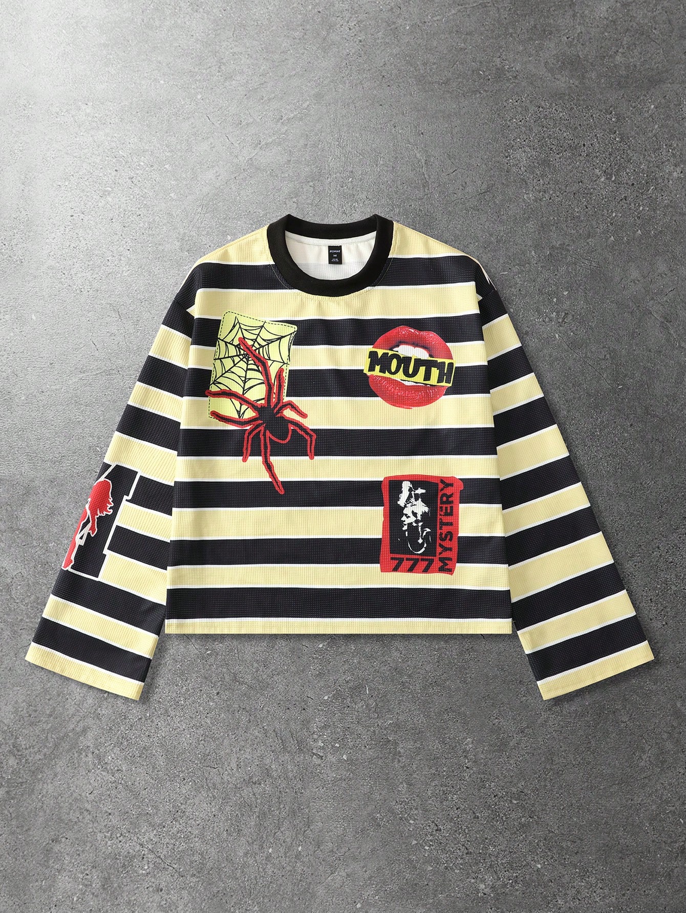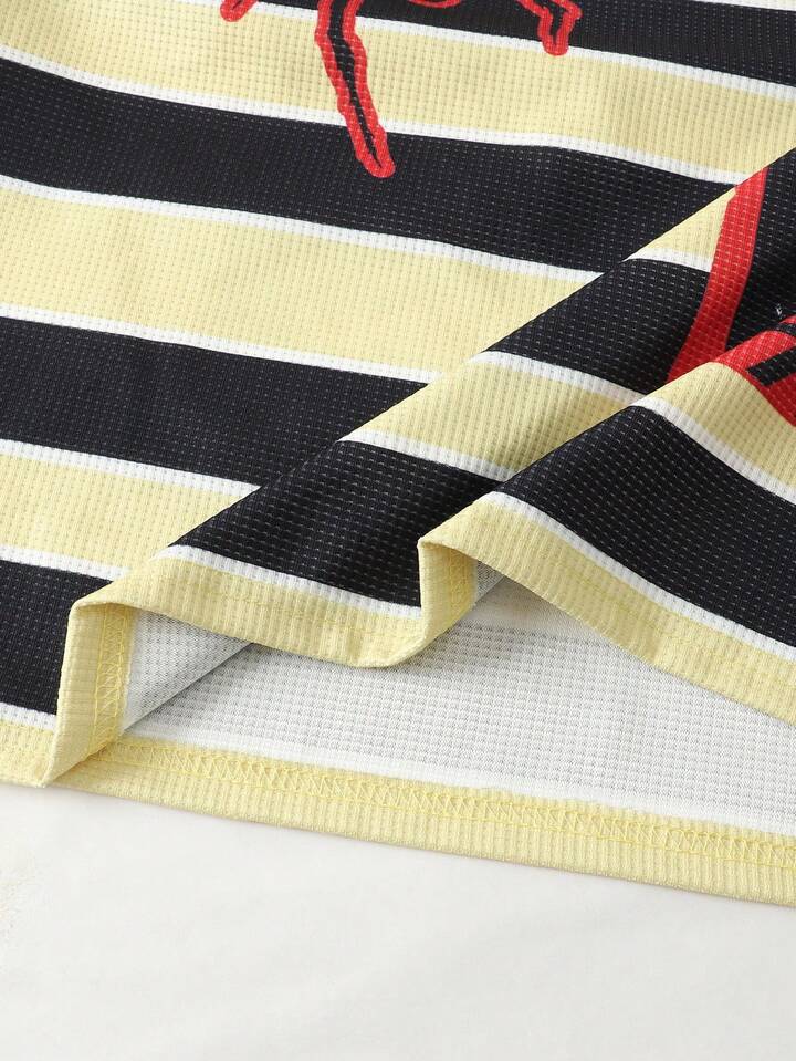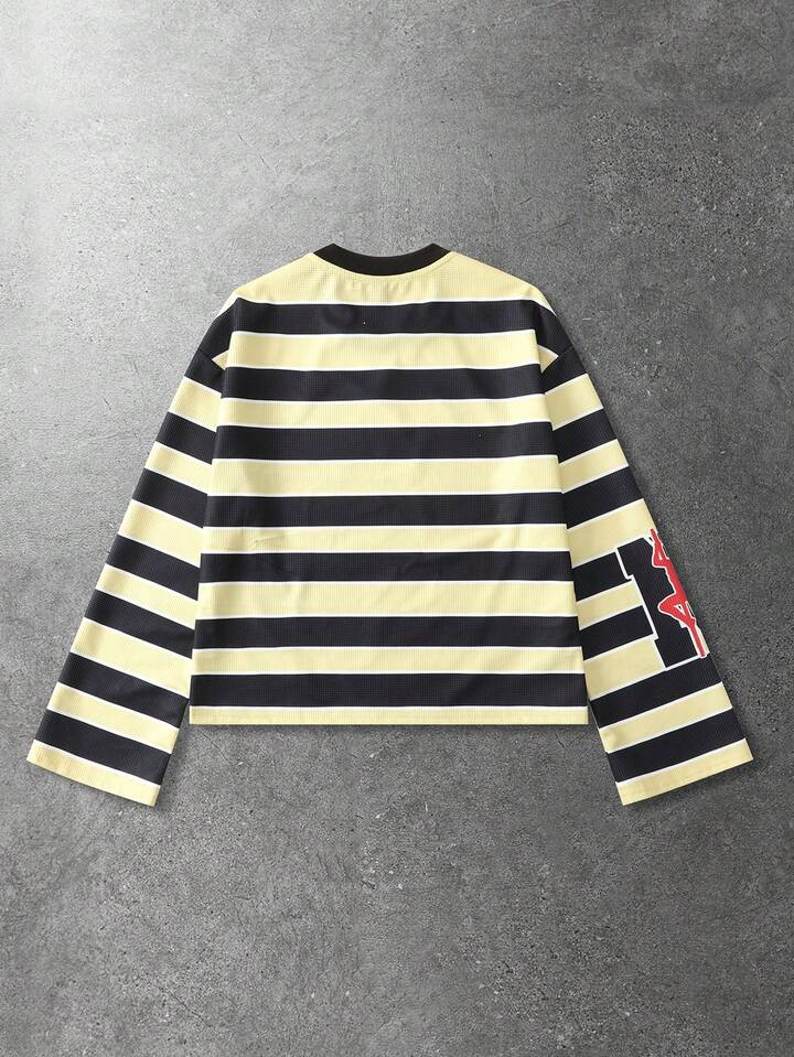 Street Life Men's Casual Striped Loose Fit Spider Web Long Sleeve T-Shirt, Autumn
