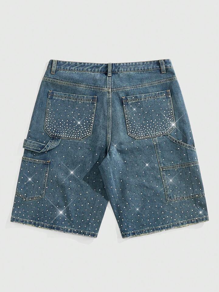 Street Life Men's Casual Washed Rhinestone Decorative Denim Shorts Jorts For Summer
