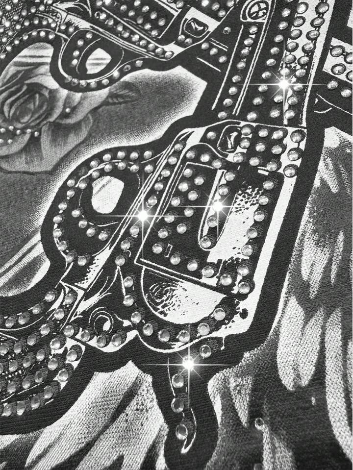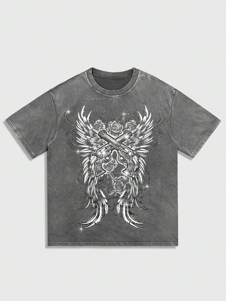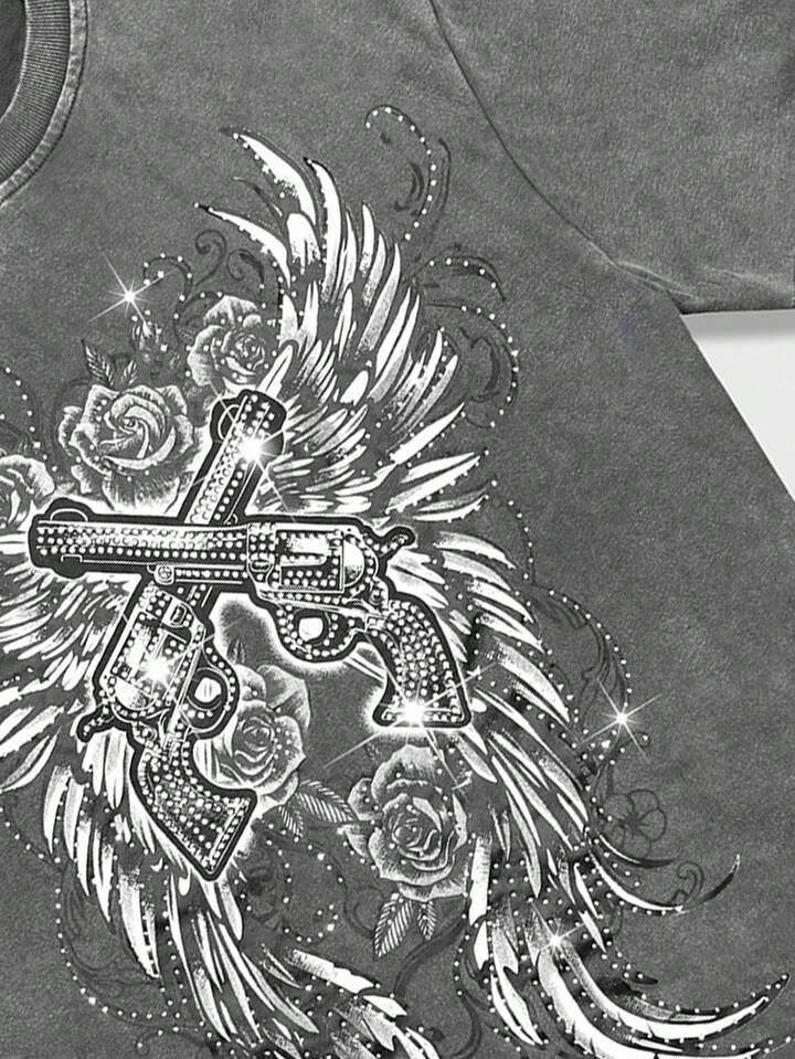 Street Life Men's Casual Washed Rhinestone Short Sleeve T-Shirt, Summer