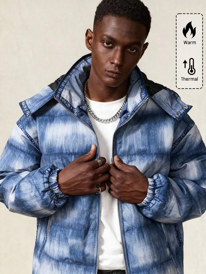 Street Life Men's Casual Washed Zip-Up Hooded Padded Coat, Autumn/Winter