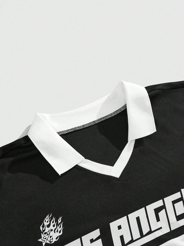 Street Life Men's Color Block Letter Print Short Sleeve Polo Football Jersey Style Shirt