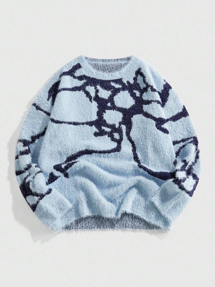 Street Life Men's Crew Neck Jacquard Knit Sweater, Fall Winter