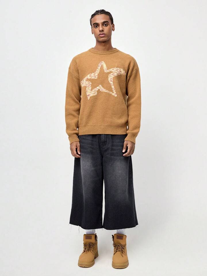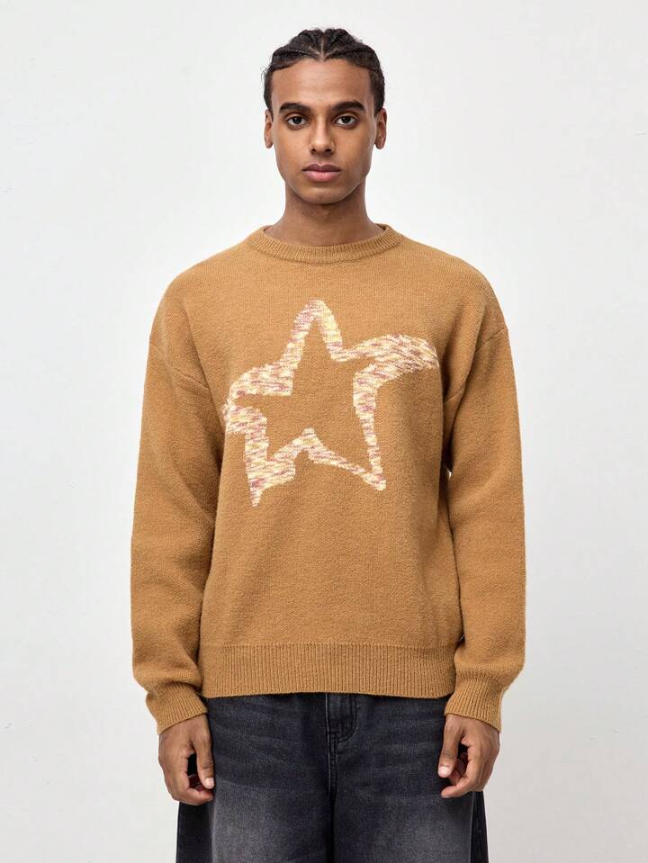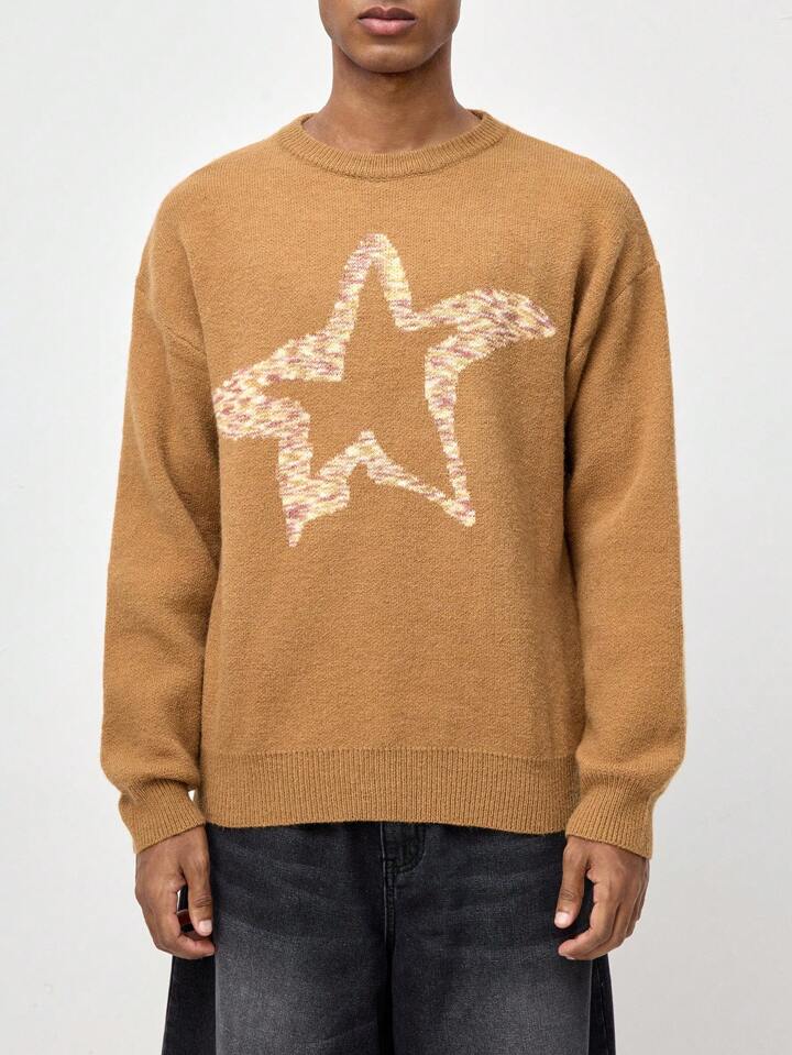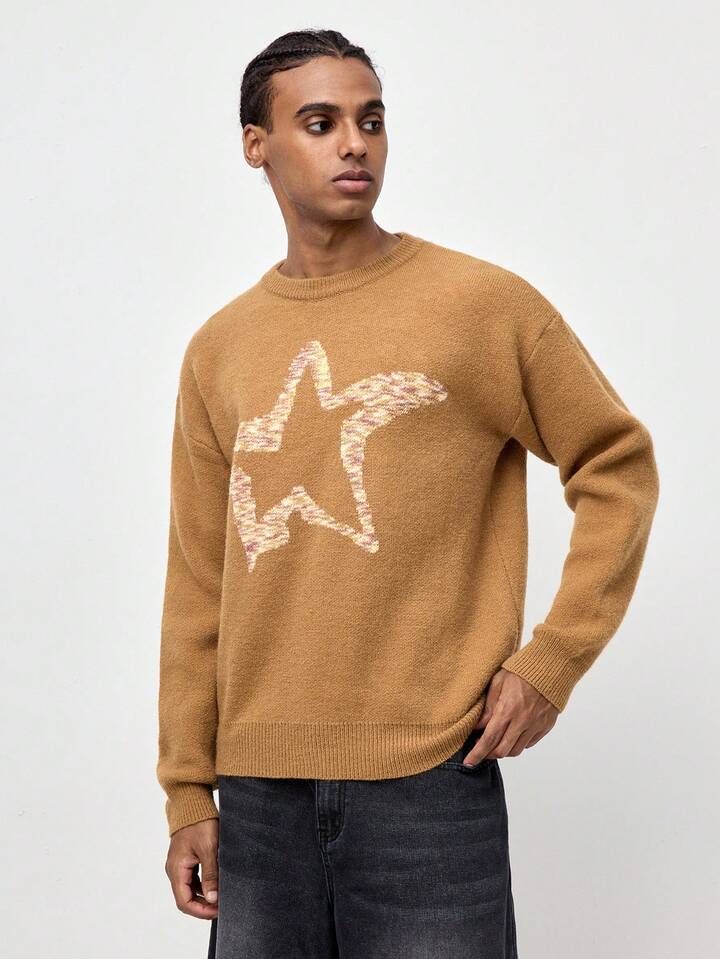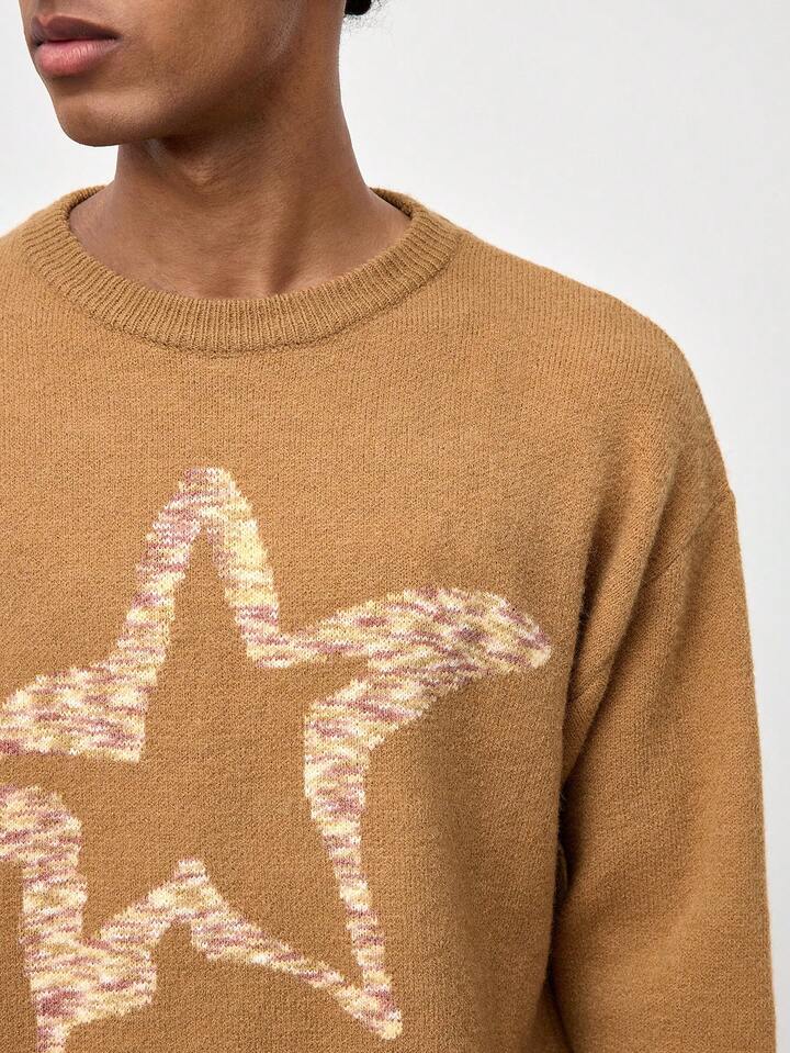Street Life Men's Crew Neck Long Sleeve Ombre Star Print Casual Top