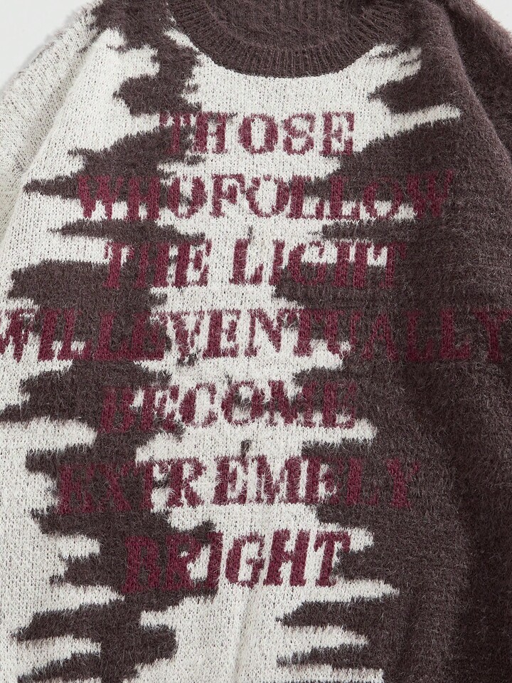 Street Life Men's Crew Neck Tie-Dyed Letter Jacquard Sweater, And Unique