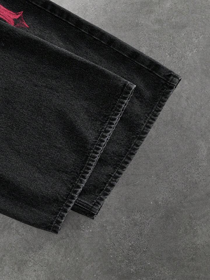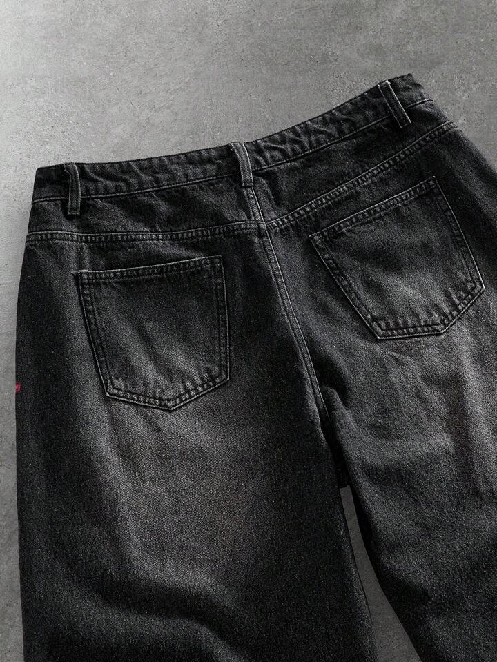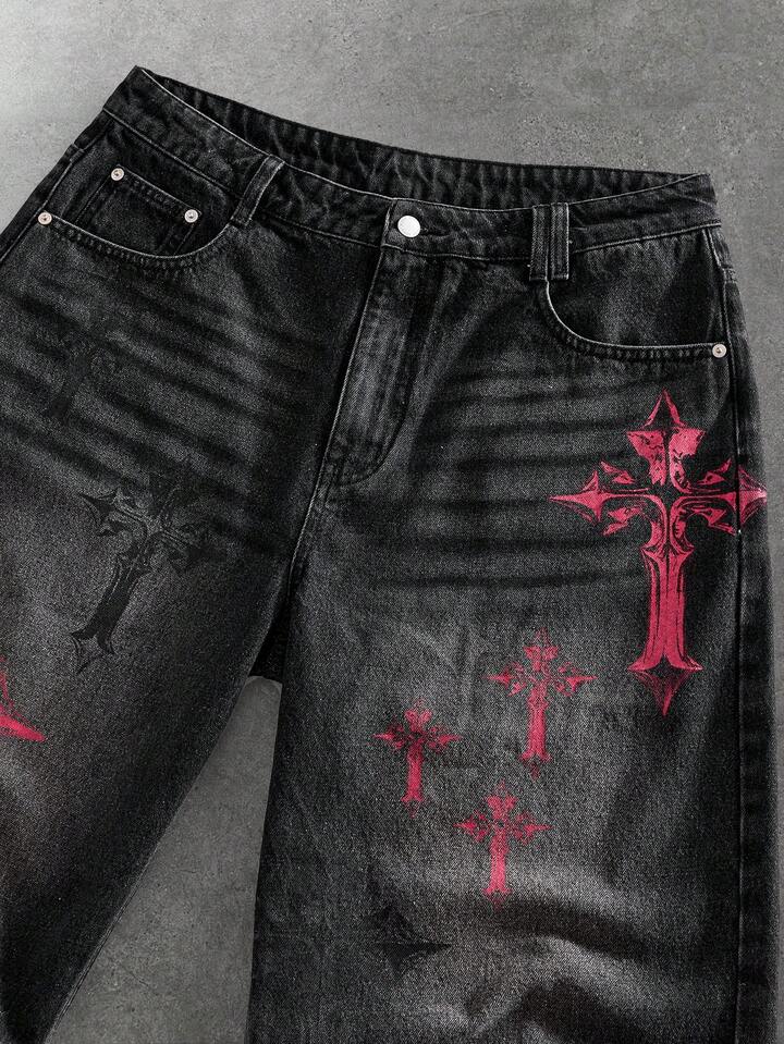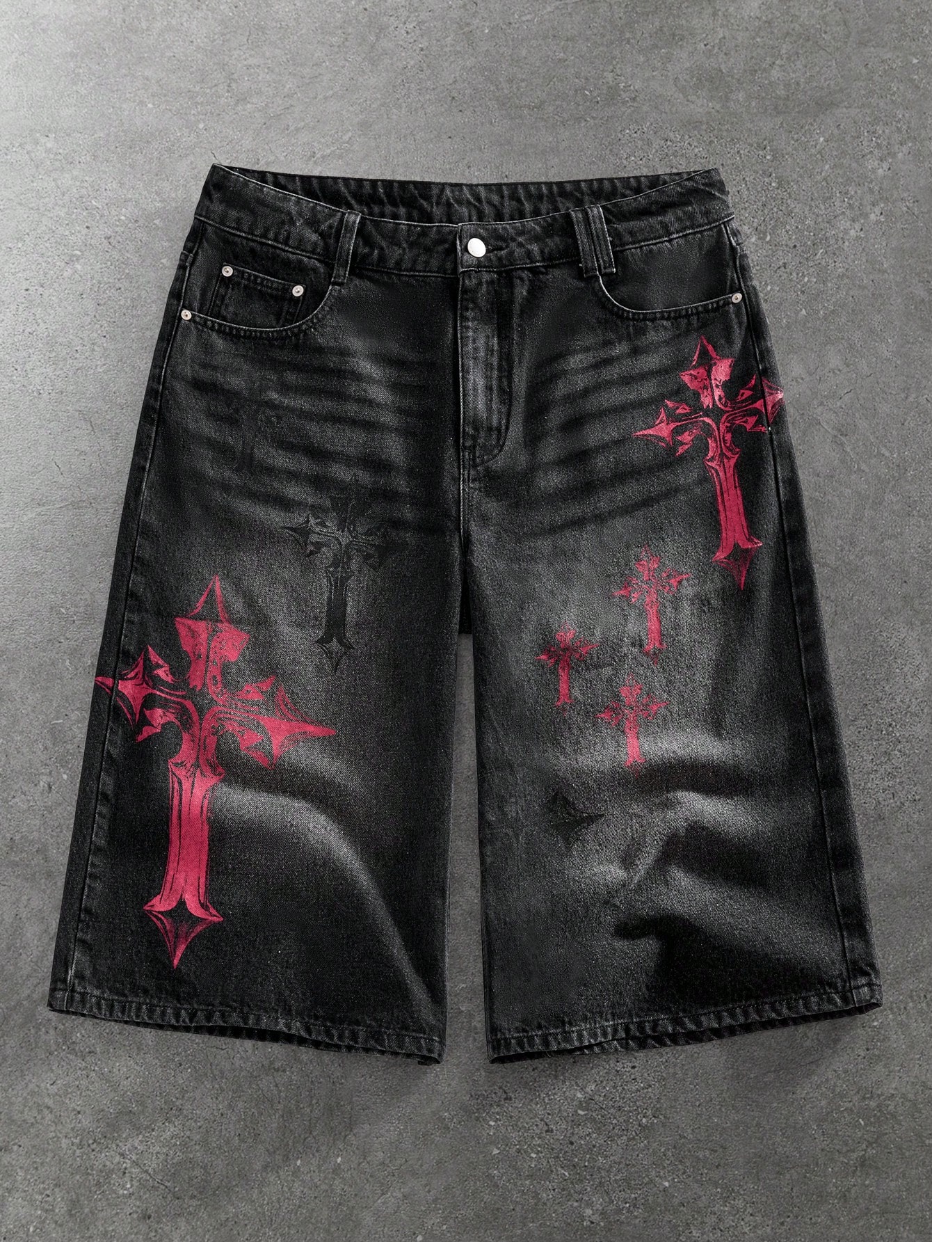 Street Life Men's Cross Print Dark-Color 3/4 Denim Shorts