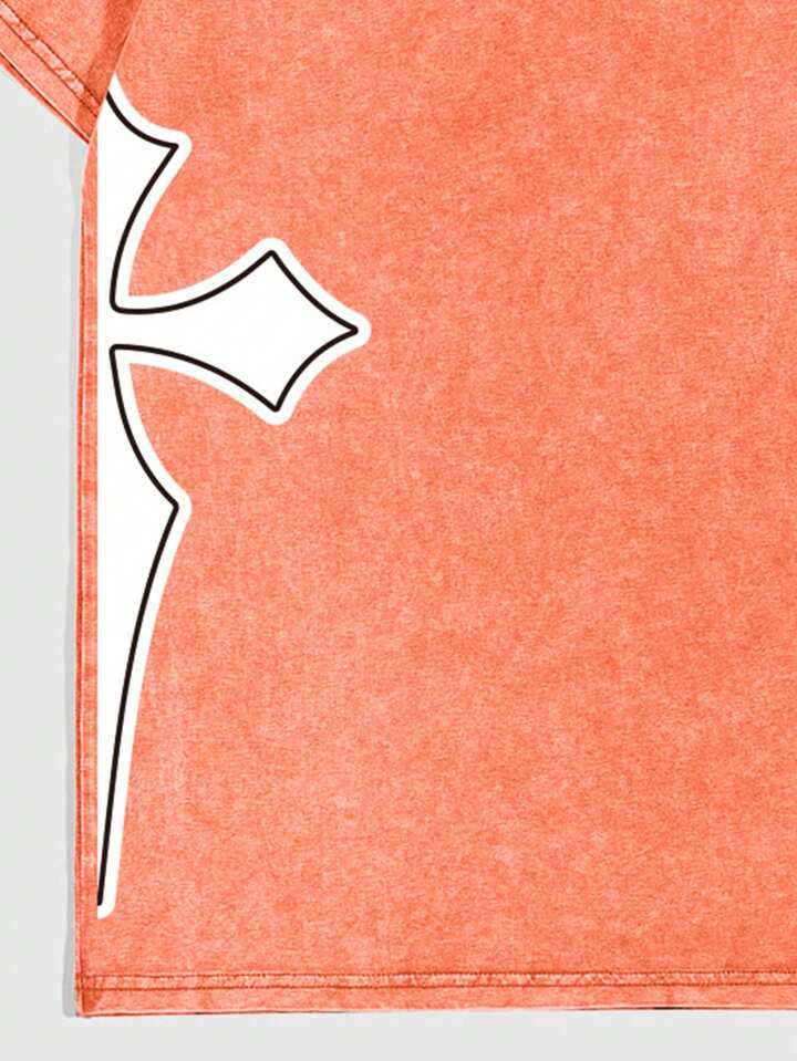 Street Life Men's Cross Print Round Neck Short Sleeve Brushed Cotton T-Shirt