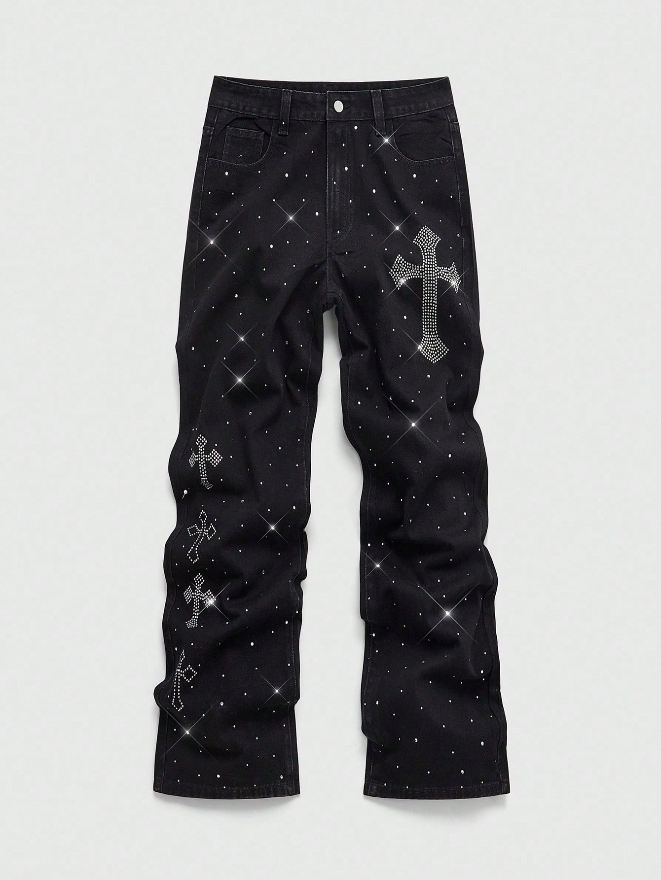 Street Life Men's Cross Rhinestone Embellished Pocket Casual Jeans Pants