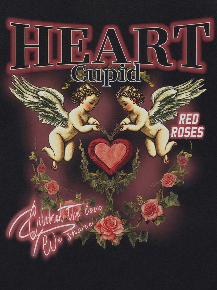 Street Life Men's Cupid/Angel Heart Print Short Sleeve T-Shirt, Suitable For Everyday Wear, Spring/Summer