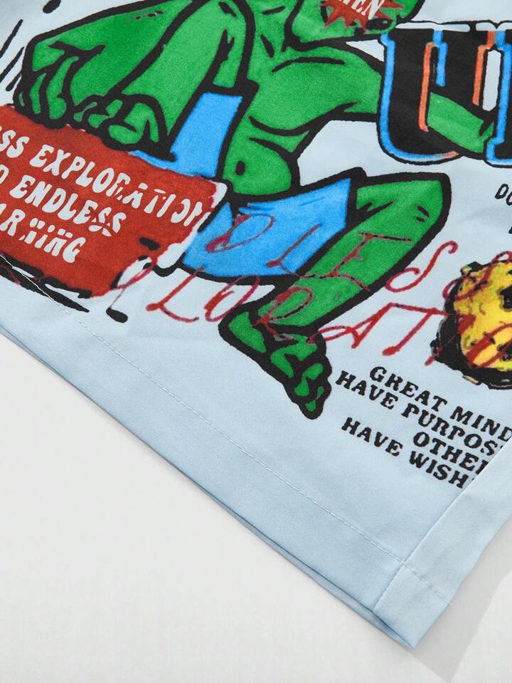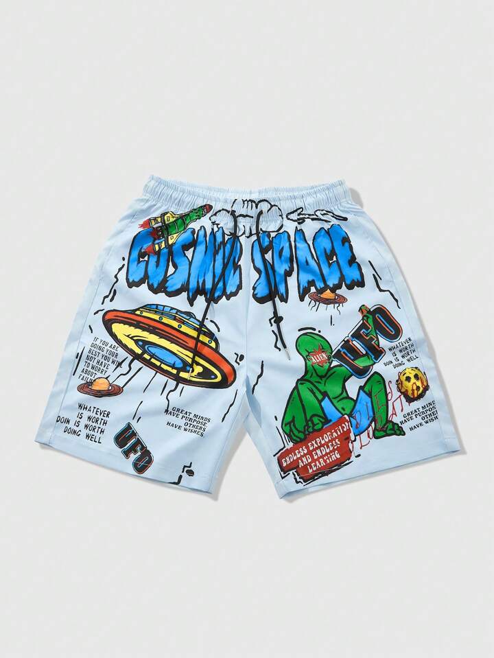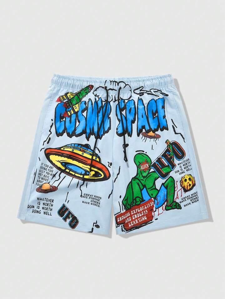 Street Life Men's Digital Print Alien, UFO, Rocket Graphic Woven Casual Shorts, Suitable For Spring/Summer