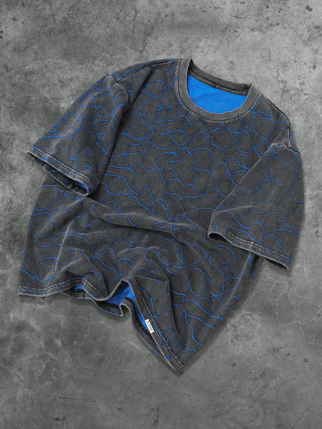 Street Life Men's Double Layer Burnout Graphic Short Sleeve T-Shirt, Suitable For Everyday Wear