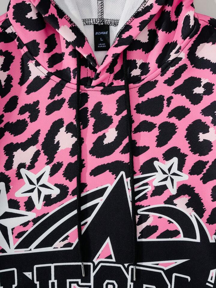 Street Life Men's Drawstring Leopard Print Patchwork Long Sleeve Hooded Casual Sweatshirt
