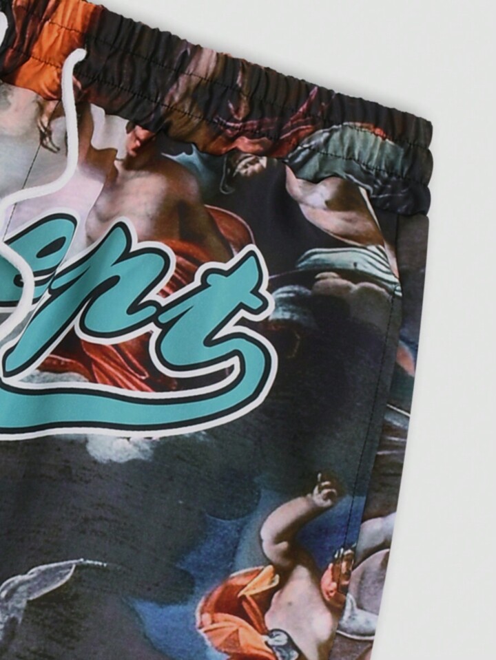 Street Life Men's Drawstring Waist Casual Shorts With Letter Oil Painting Print