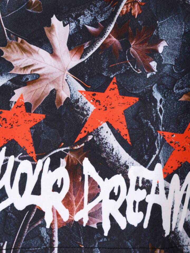 Street Life Men's Drawstring Waist Five-Pointed Star & Letter Print Casual Shorts
