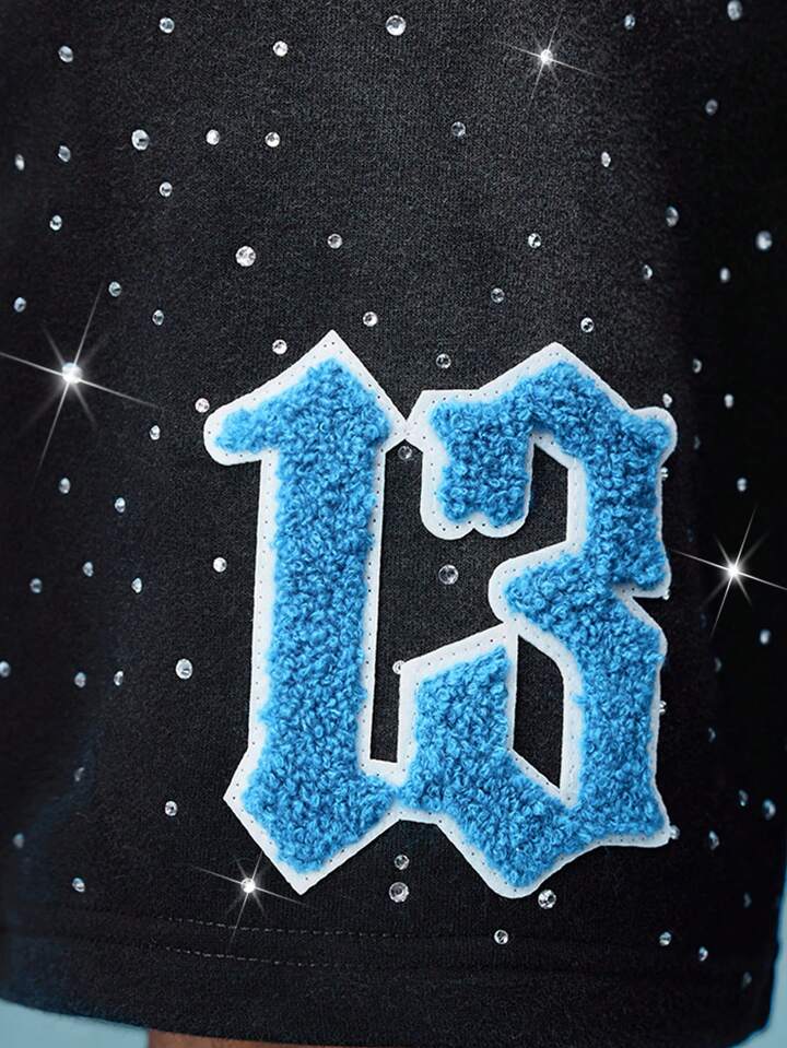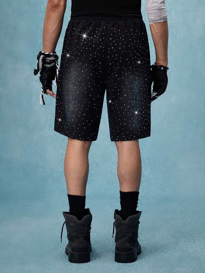 Street Life Men's Drawstring Waist Pocketed Sparkling Rhinestone Print Shorts