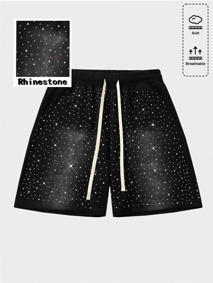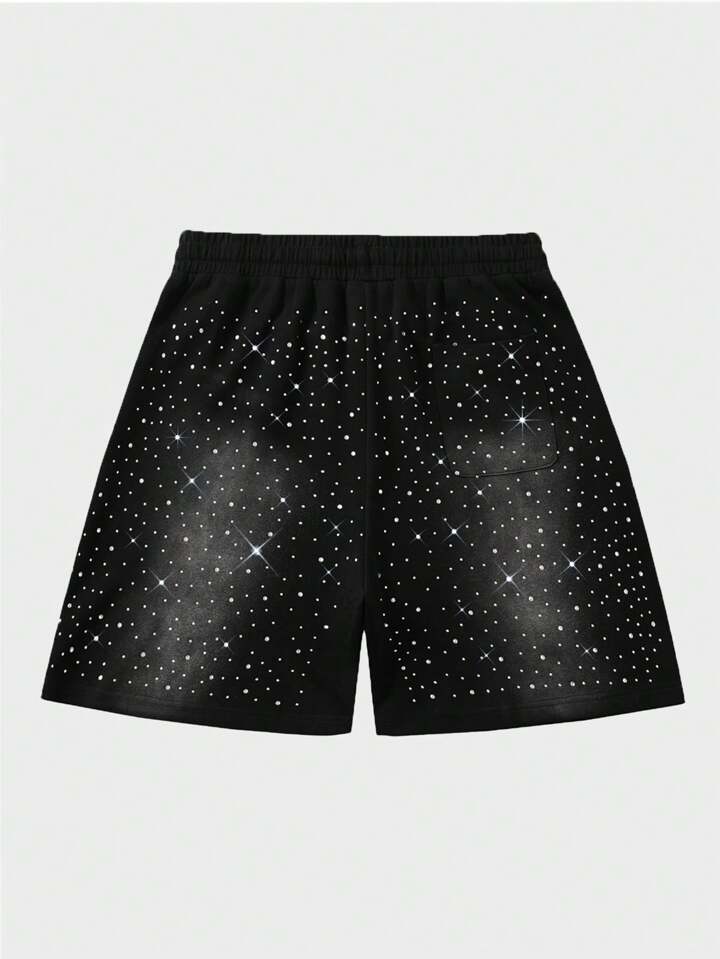 Street Life Men's Drawstring Waist Sparkling Diamond Print Shorts
