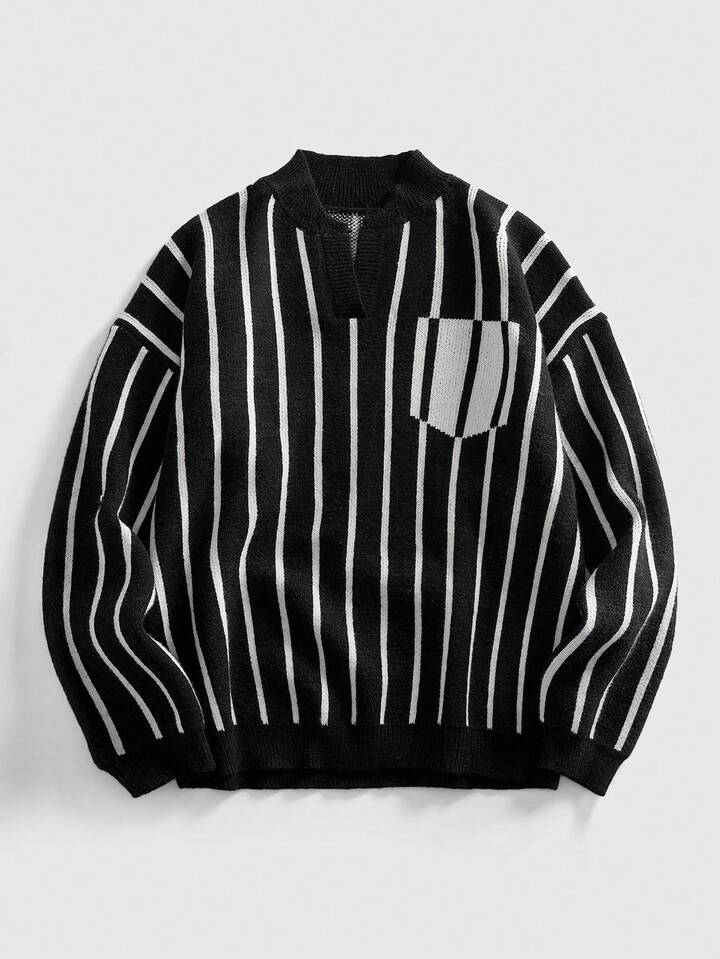 Street Life Men's Embroidered Collar Knit Sweater, Street Fashion