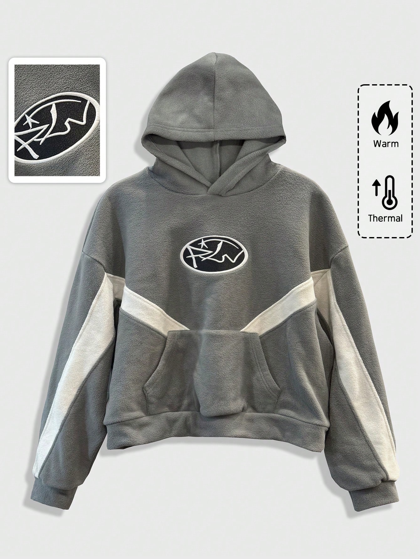 Prep Men's Embroidered Colorblock Pocket Casual Versatile Hoodie, Long Sleeve Top