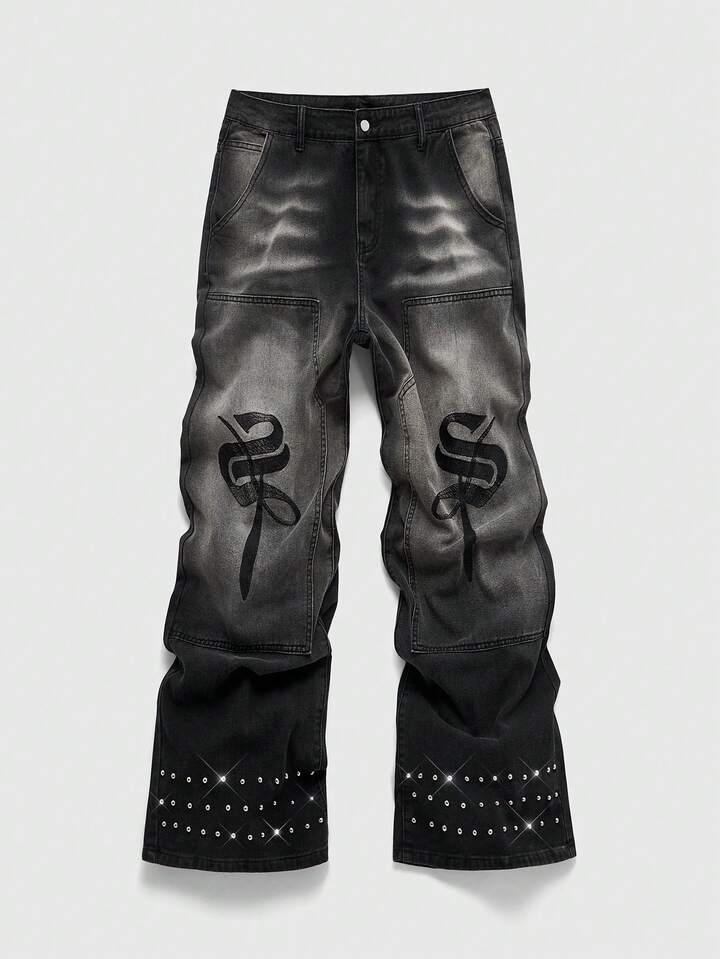 Street Life Men's Embroidered Denim Jeans, Suitable For Everyday Wear, Spring/Summer