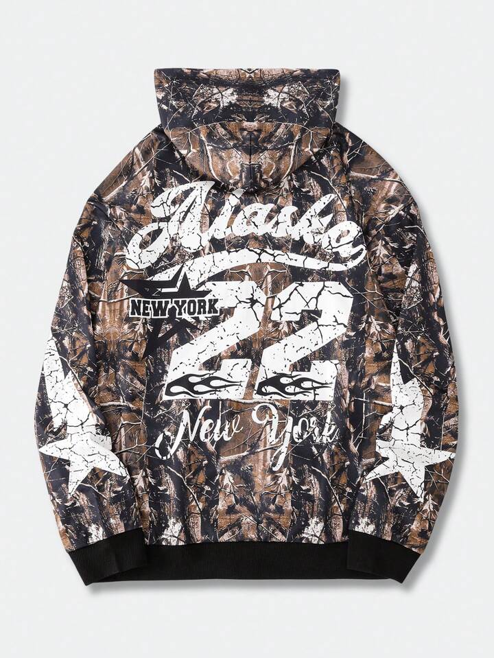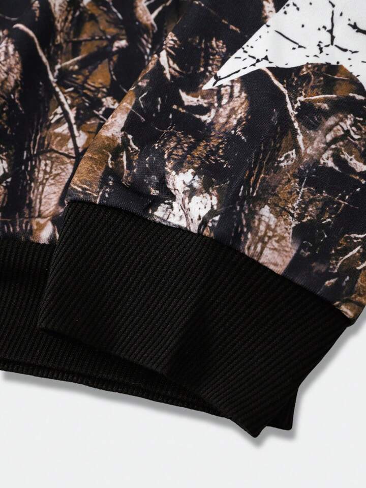 Street Life Men's Fashion Dry Wood Branch Print Loose Zip-Up Hoodie, School