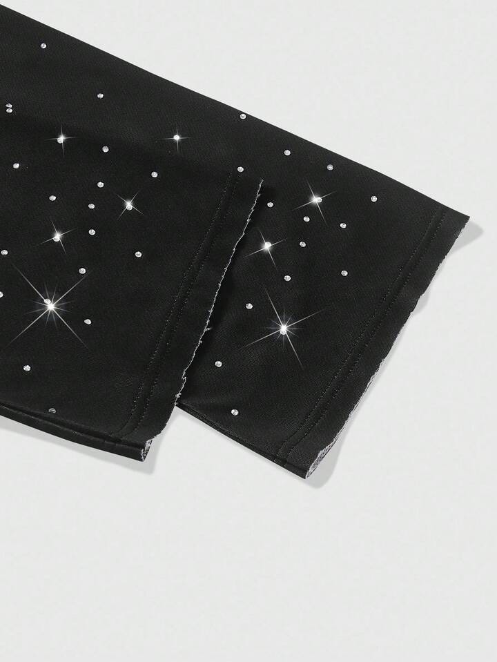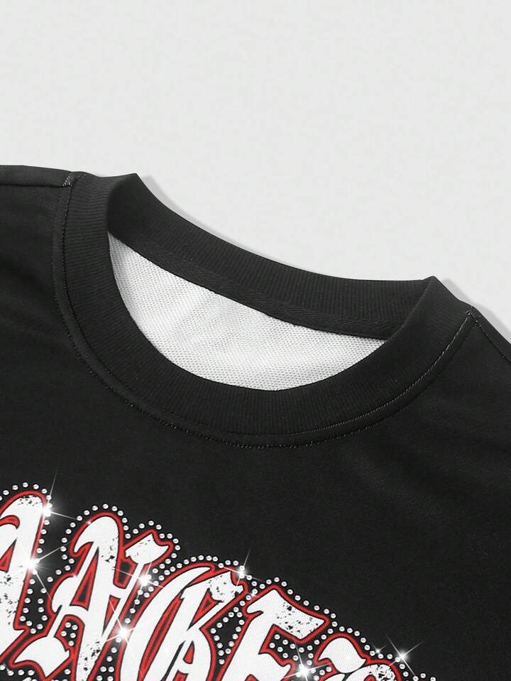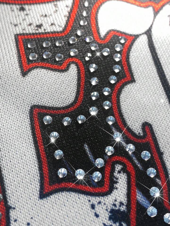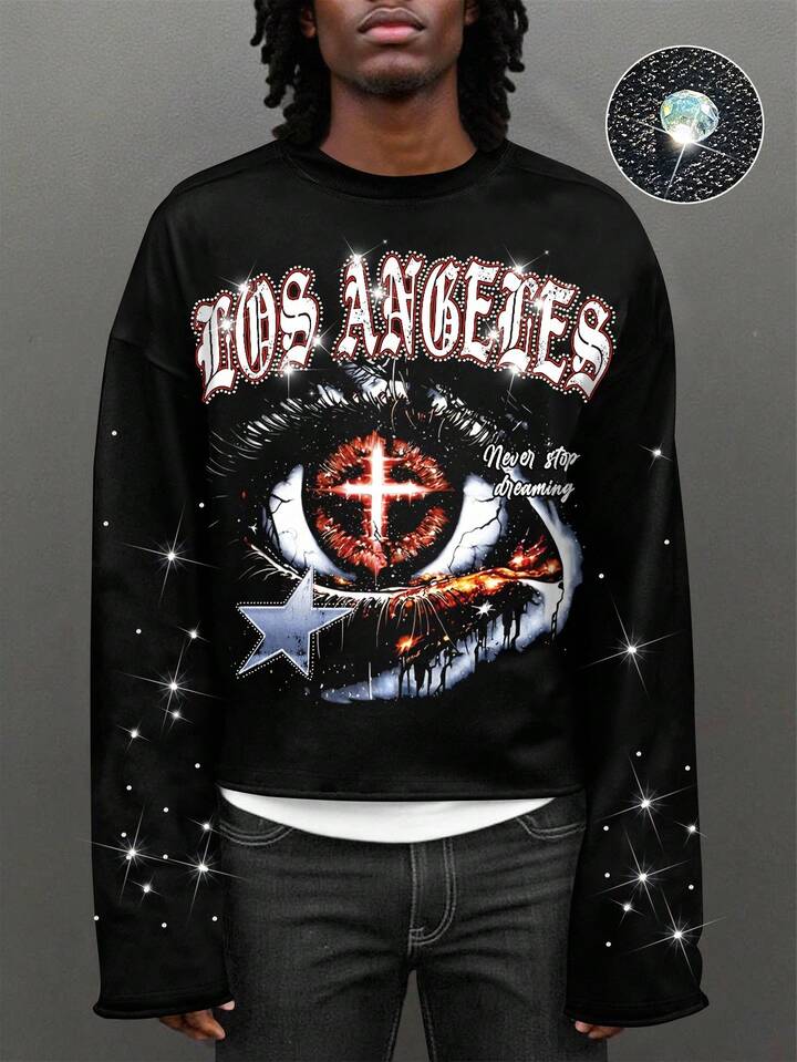 Street Life Men's Fashion Eye & Letter Print Rhinestone Embellished T-Shirt