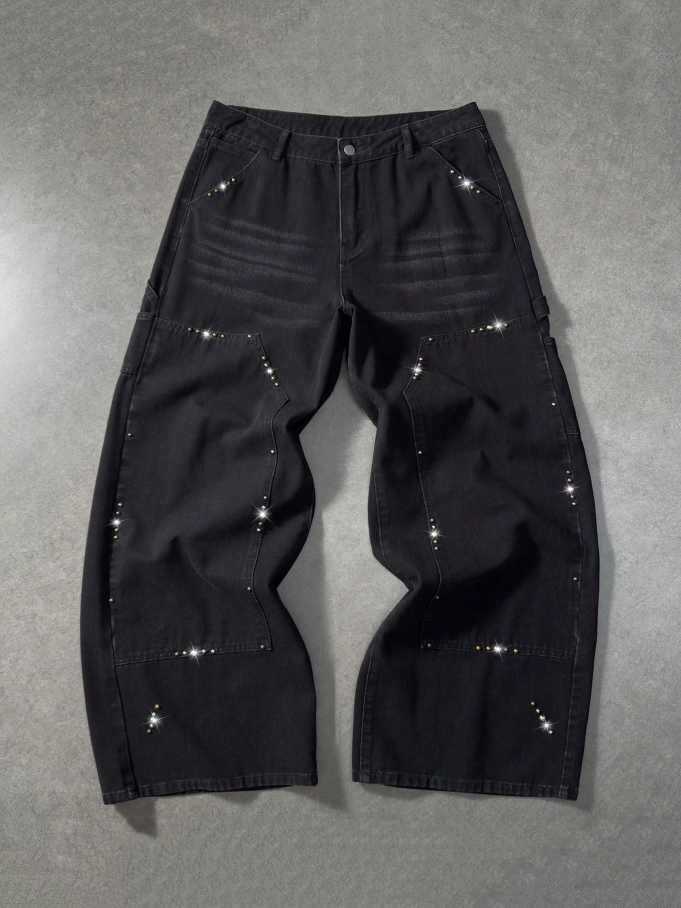 Street Life Men's Fashion Faux Pearl Decor Loose Fit Jeans