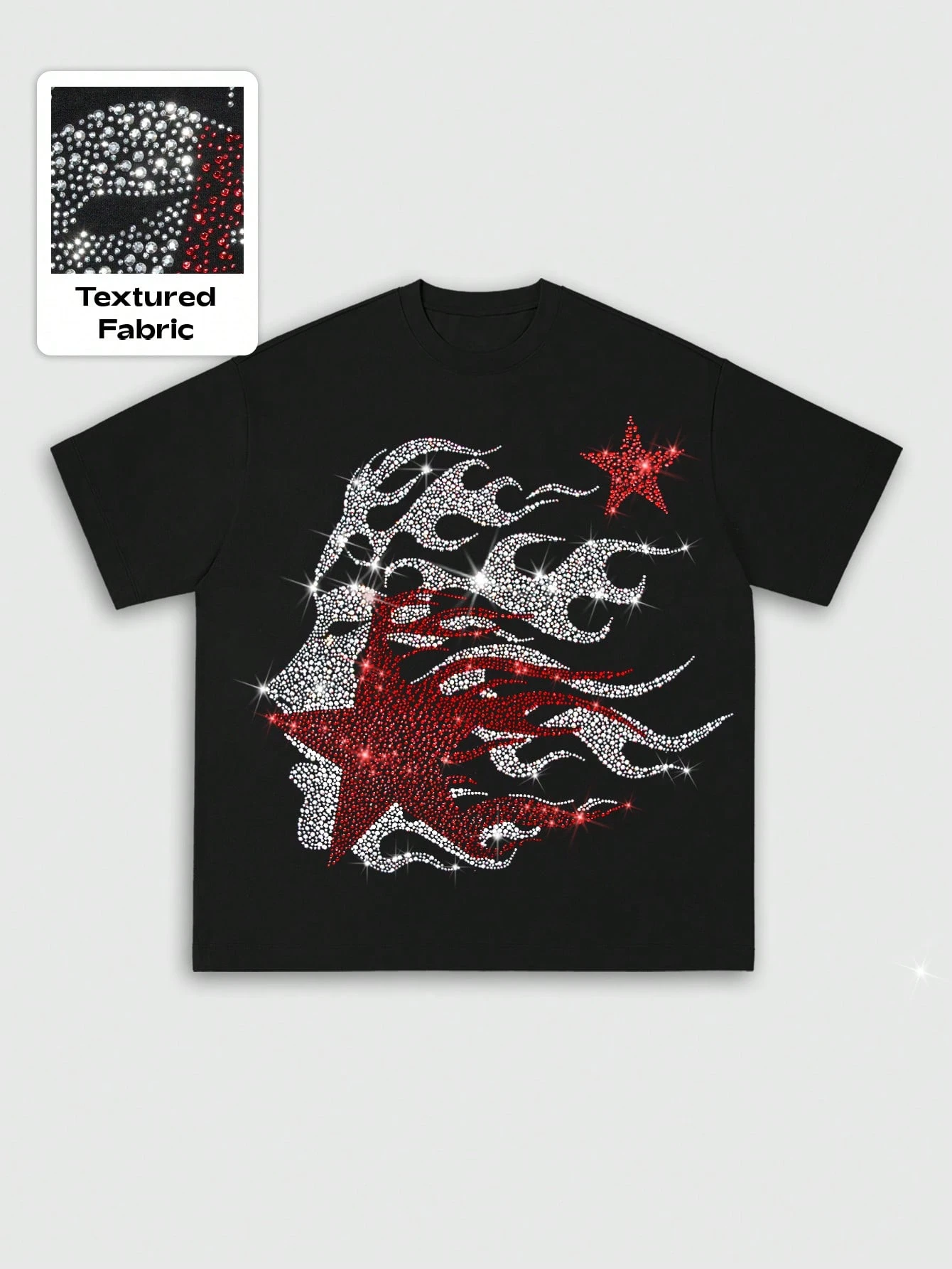 Street Life Men's Fashion Rhinestone Embellished Street Style Short Sleeve T-Shirt, Summer, Rave