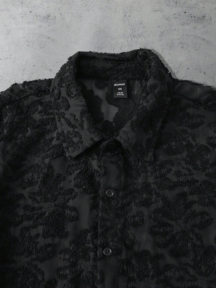 Street Life Men's Fashion Solid Color 3D Floral Textured Long Sleeve Shirt