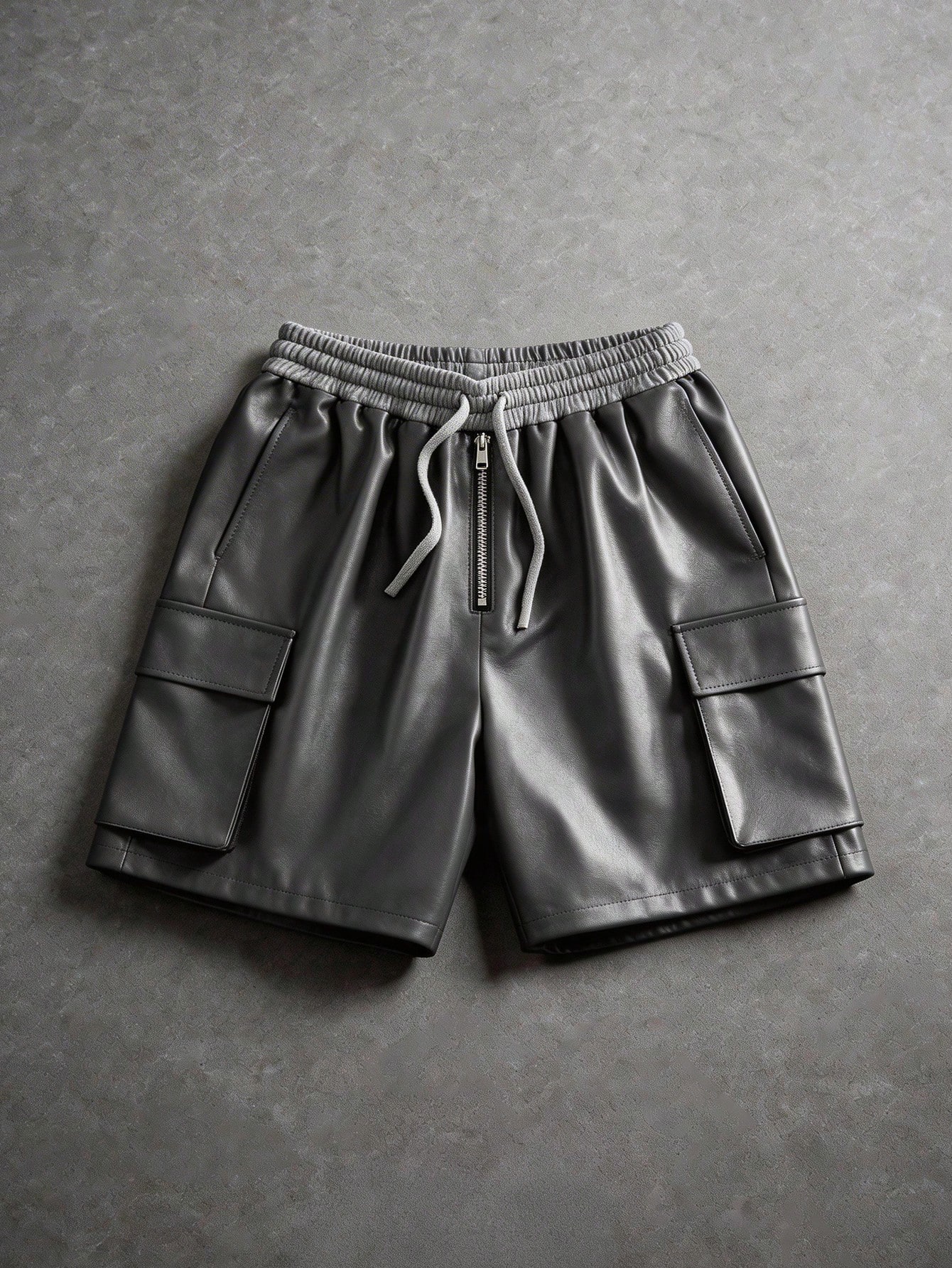 Street Life Men's Fashionable Patchwork Waistband PU Elastic Waist Shorts