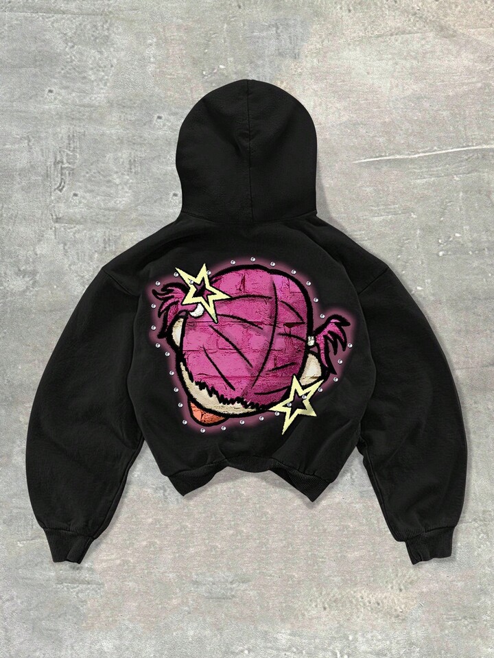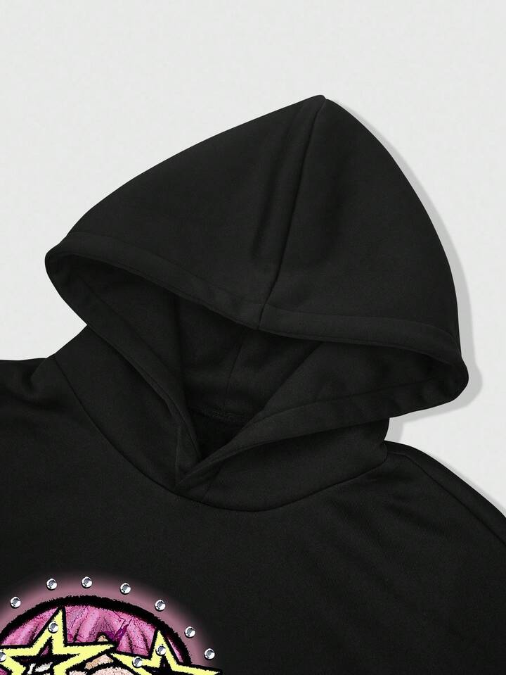 Street Life Men's Fashionable Rhinestone Print Long Sleeve Hoodie, Fall