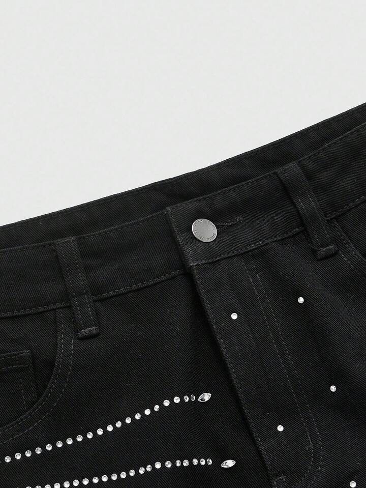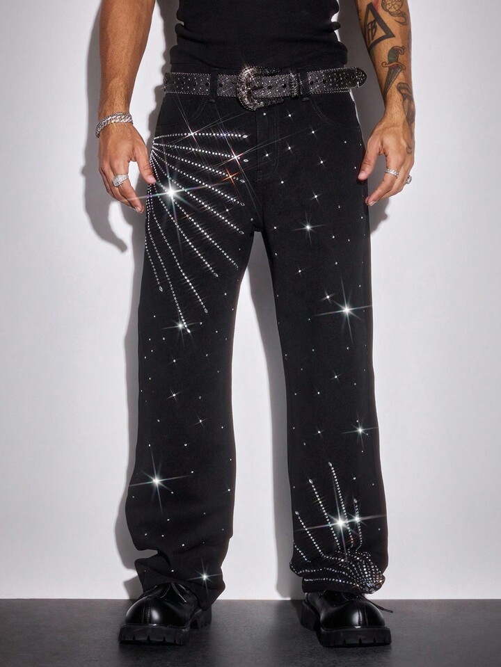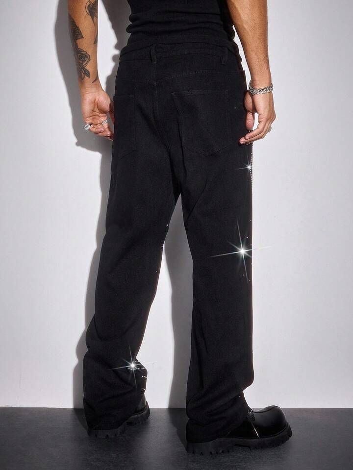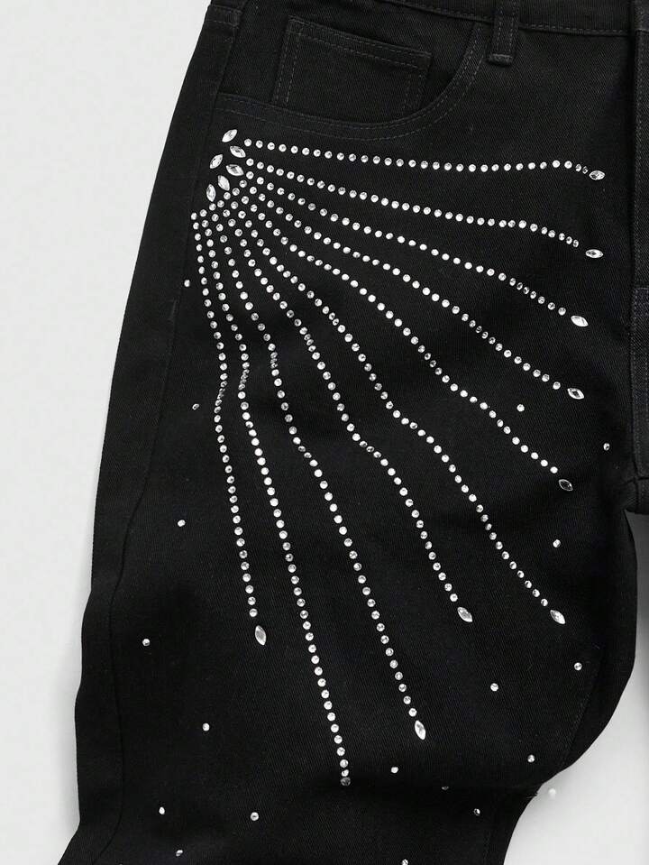 Street Life Men's Fashionable Street Rhinestone Embellished Flared Jeans, Grunge