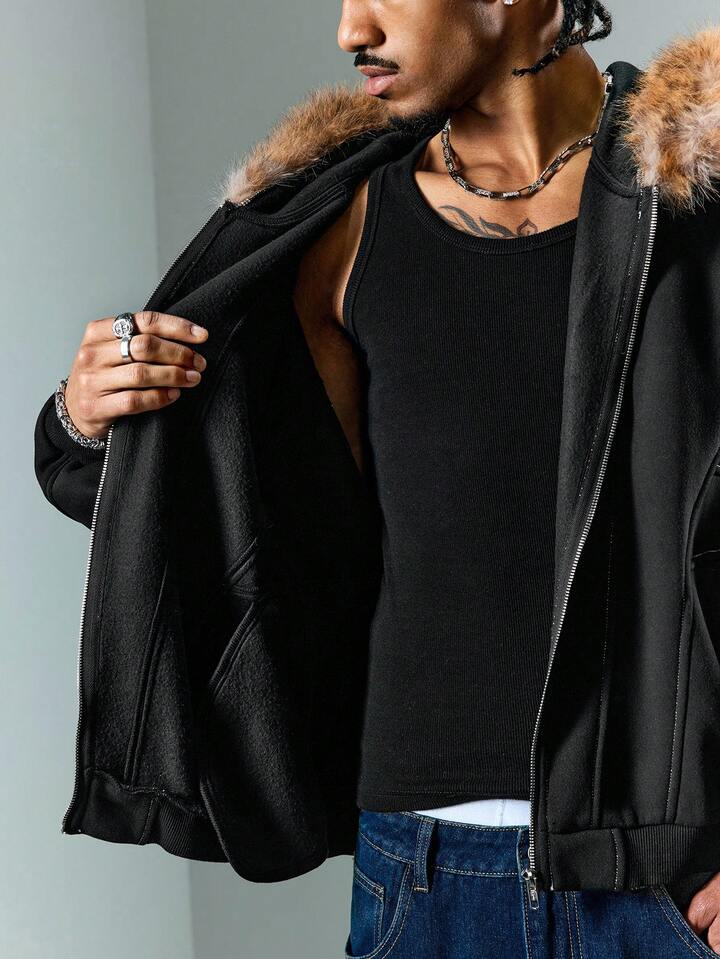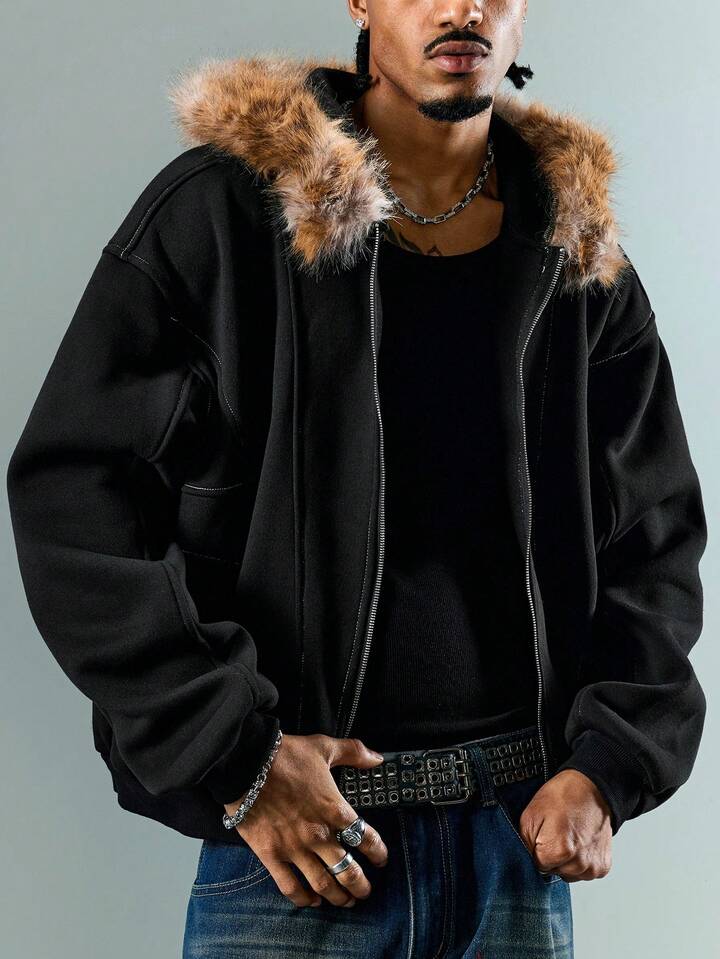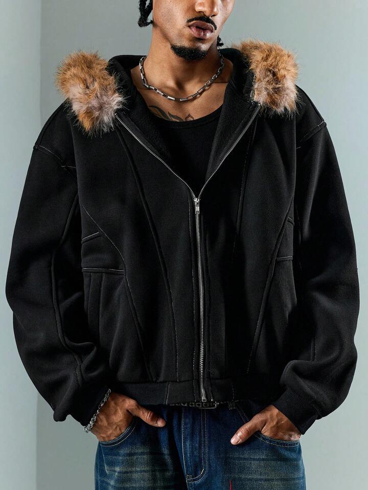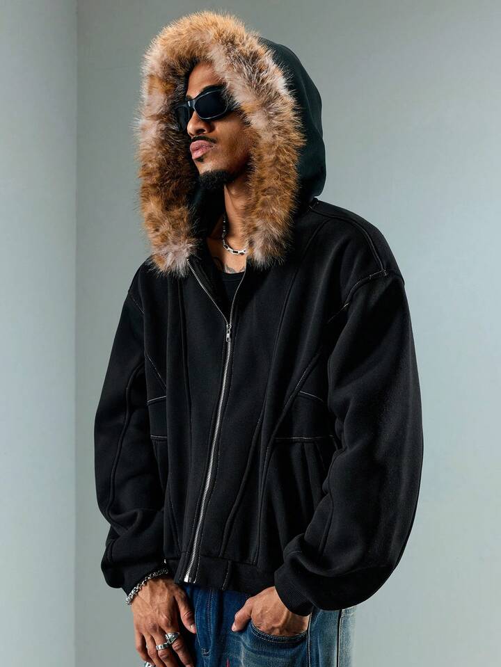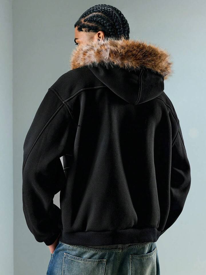 Street Life Men's Fashionable Warm Hooded Sweatshirt Fluffy Collar For Winter
