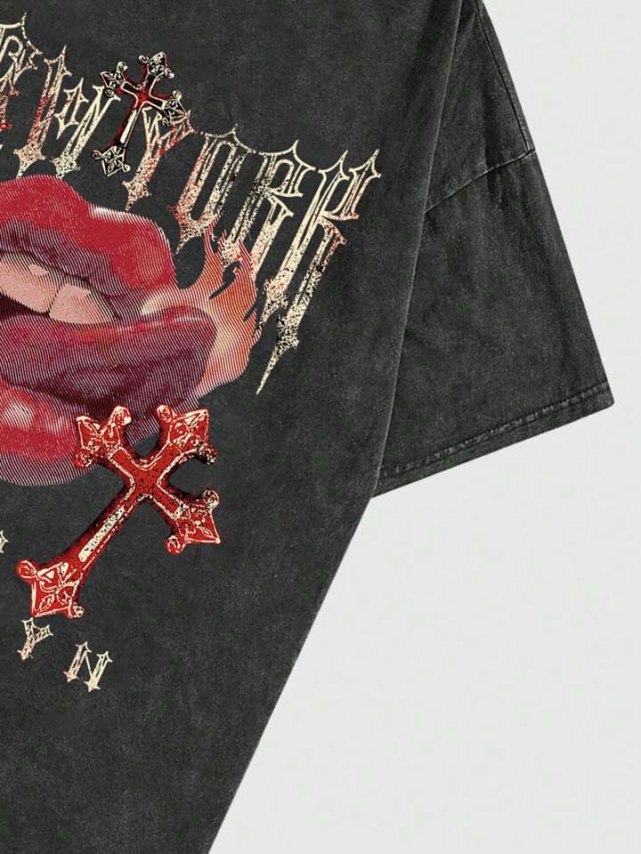 Street Life Men's Figure Cross & Letter Printed Distressed T-Shirt For Halloween, School