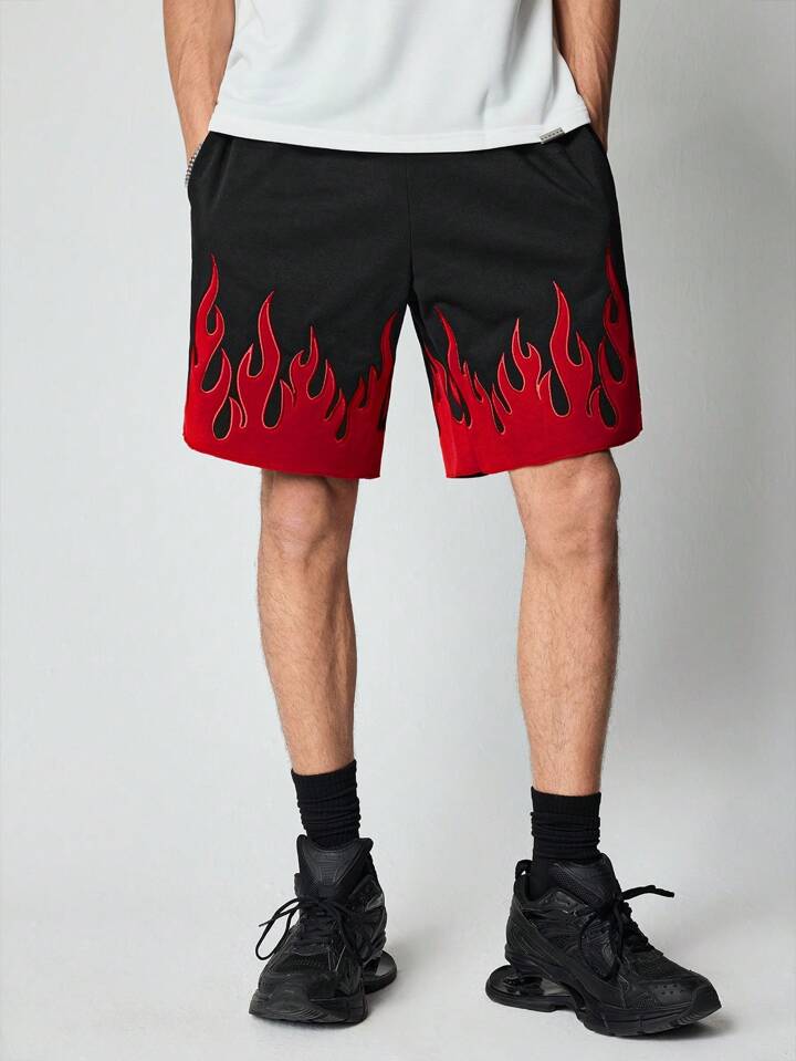 Street Life Men's Flame Printed Front Tie Pocket Casual Shorts