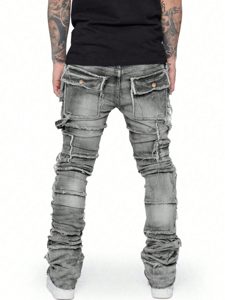 Street Life Men's Flip Pocket Patched Stretch Slim Fit Casual Jeans, School