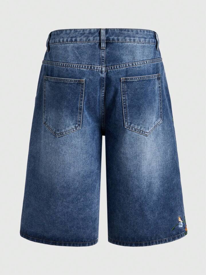 Street Life Men's Floral Embroidery Pocket Casual Bermuda Denim Shorts, Vacation