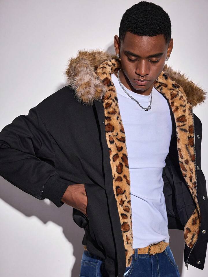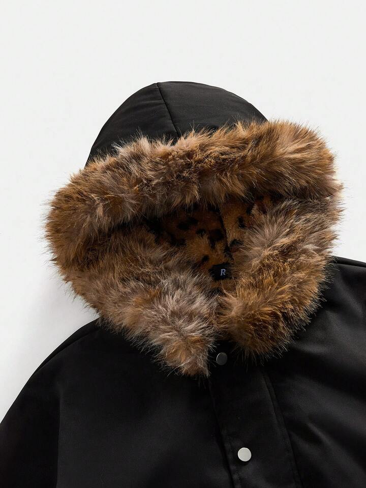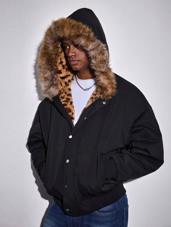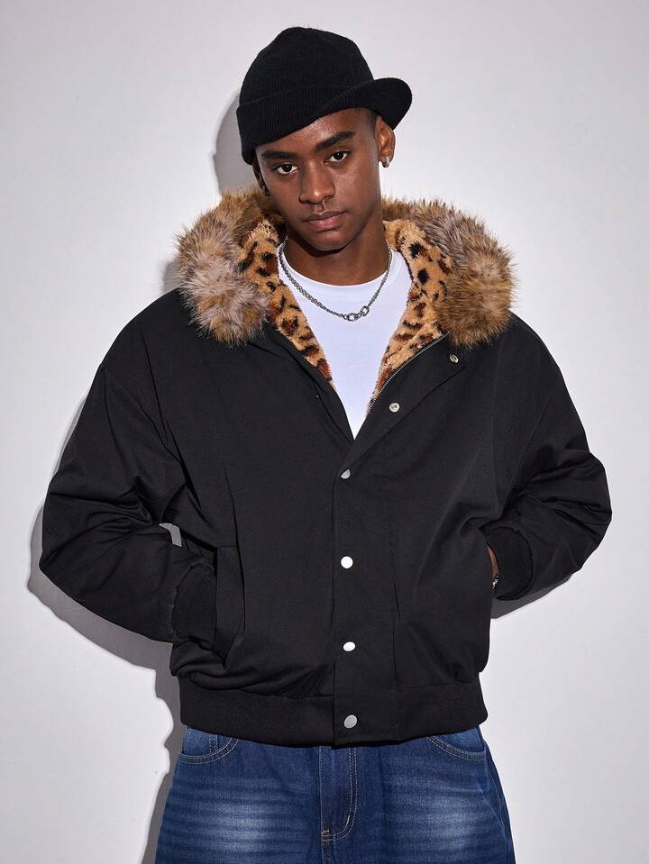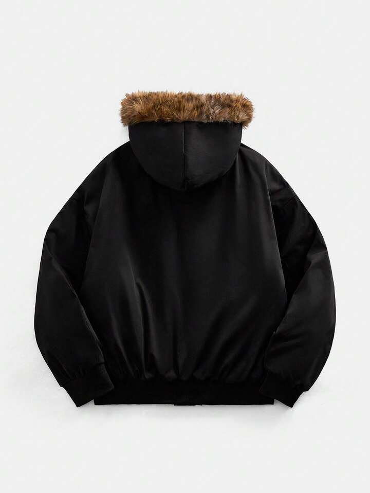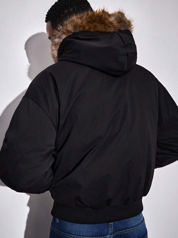 Street Life Men's Fluffy Collar Hooded Padded Coat, Loose Fit
