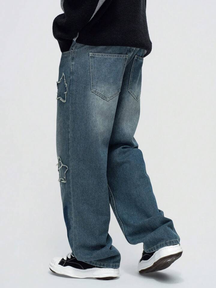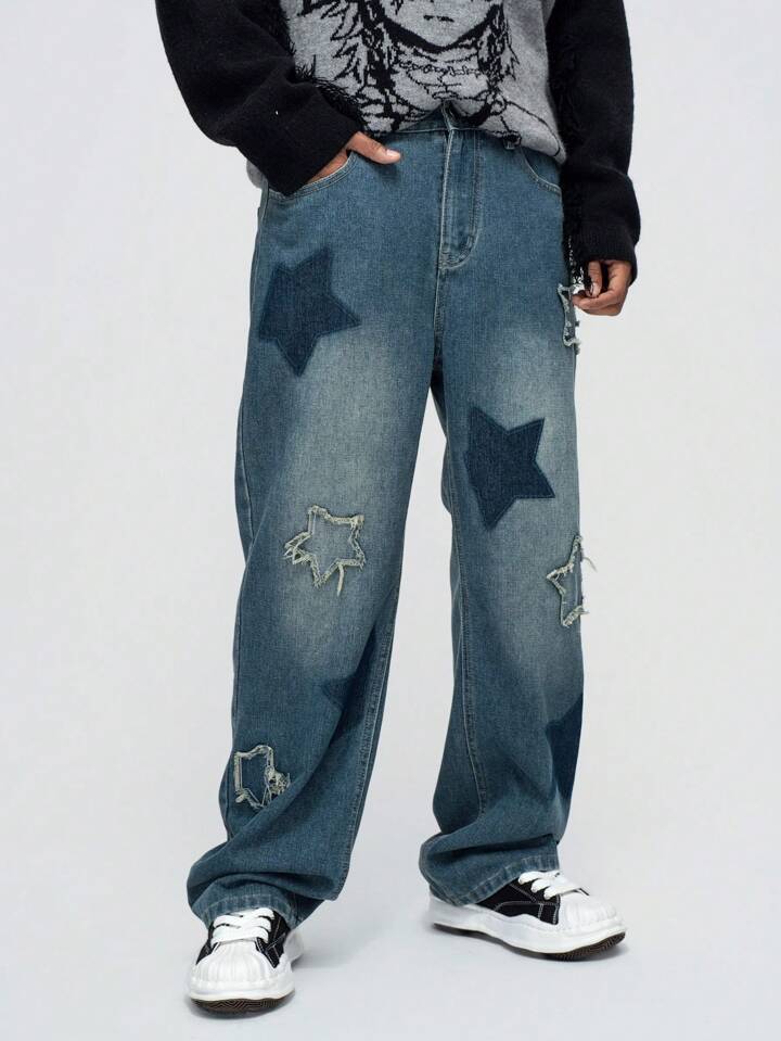 Street Life Men's Front Button Pocket Pentagon Star Casual Jeans, Everyday Wear