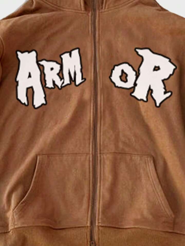 Street Life Men's Front Zipper Long Sleeve Pocket Letter Print Casual Pullover Hoodie
