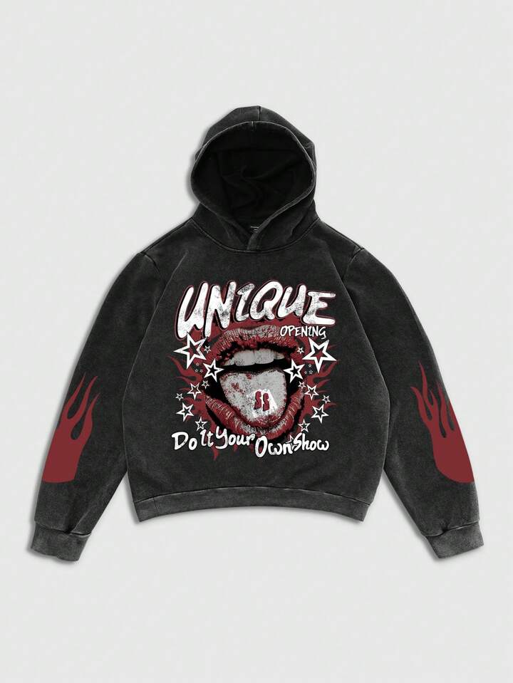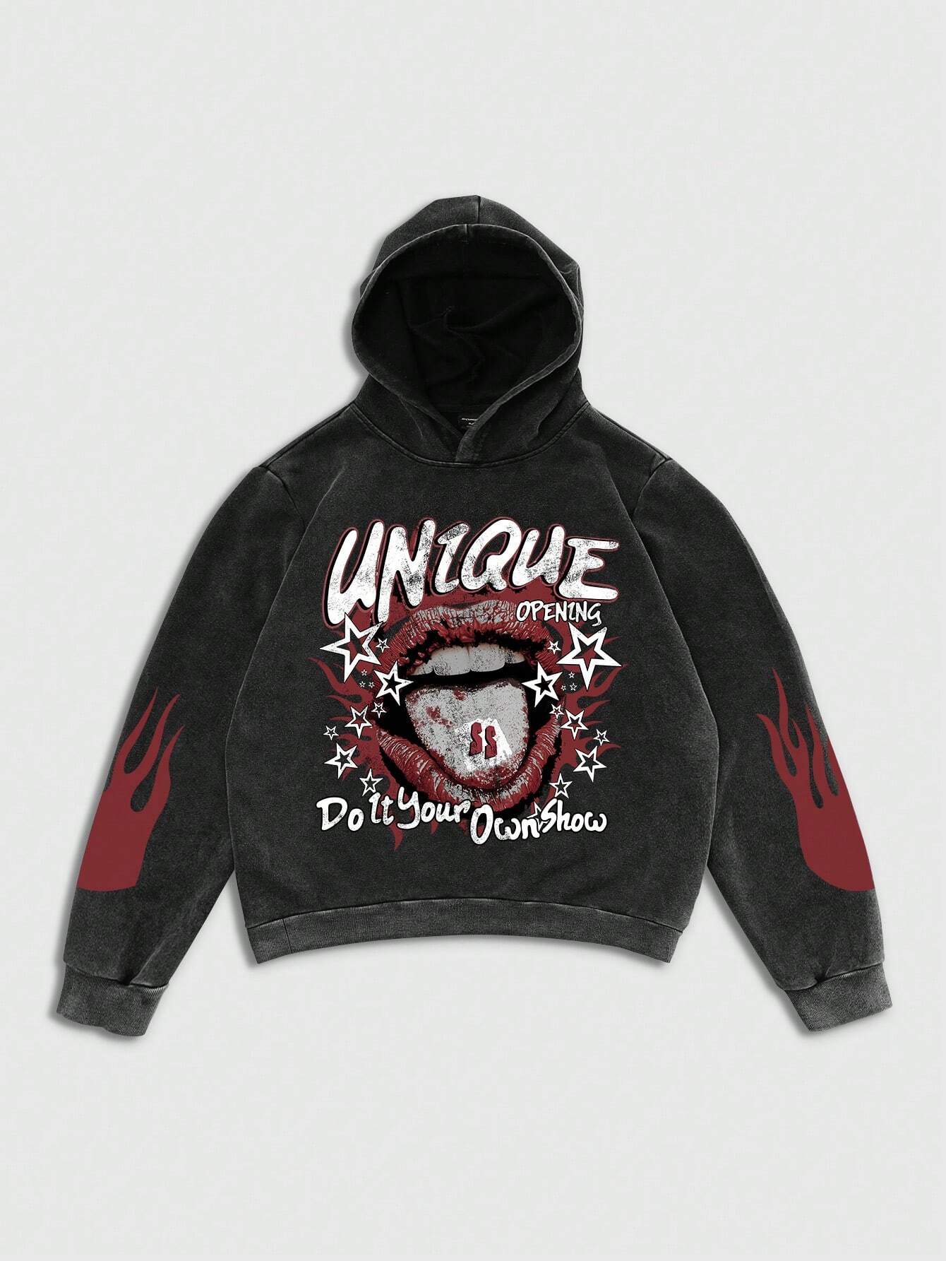 Street Life Men's Funny Graffiti Portrait Print Washed Hoodie, Vintage Style High Street
